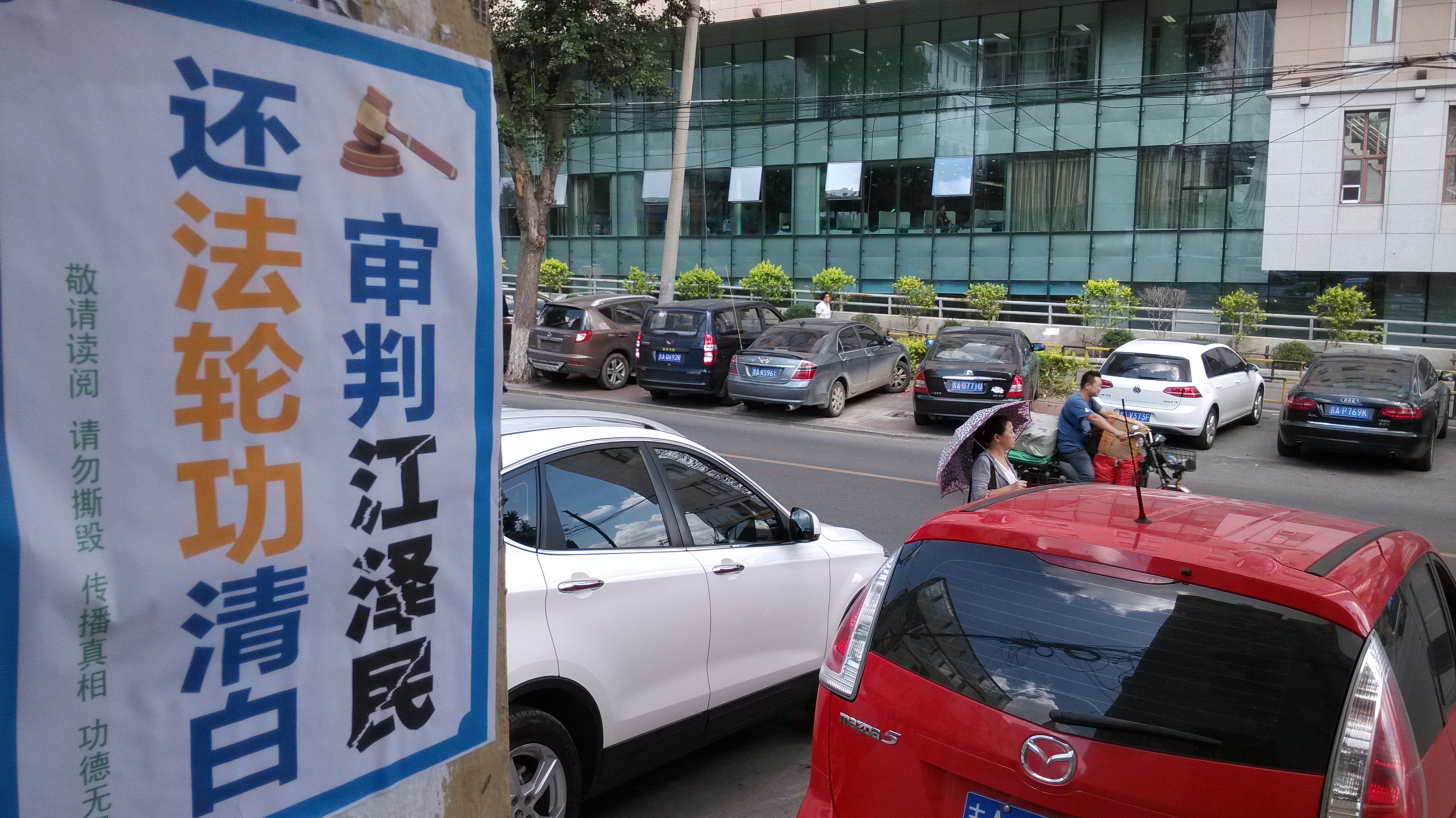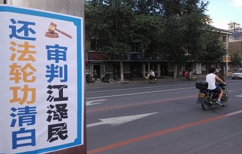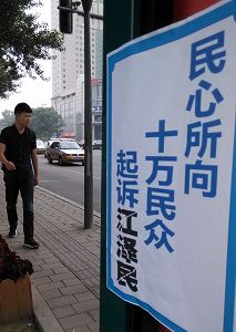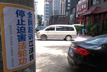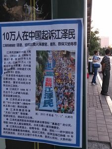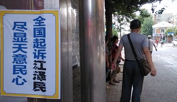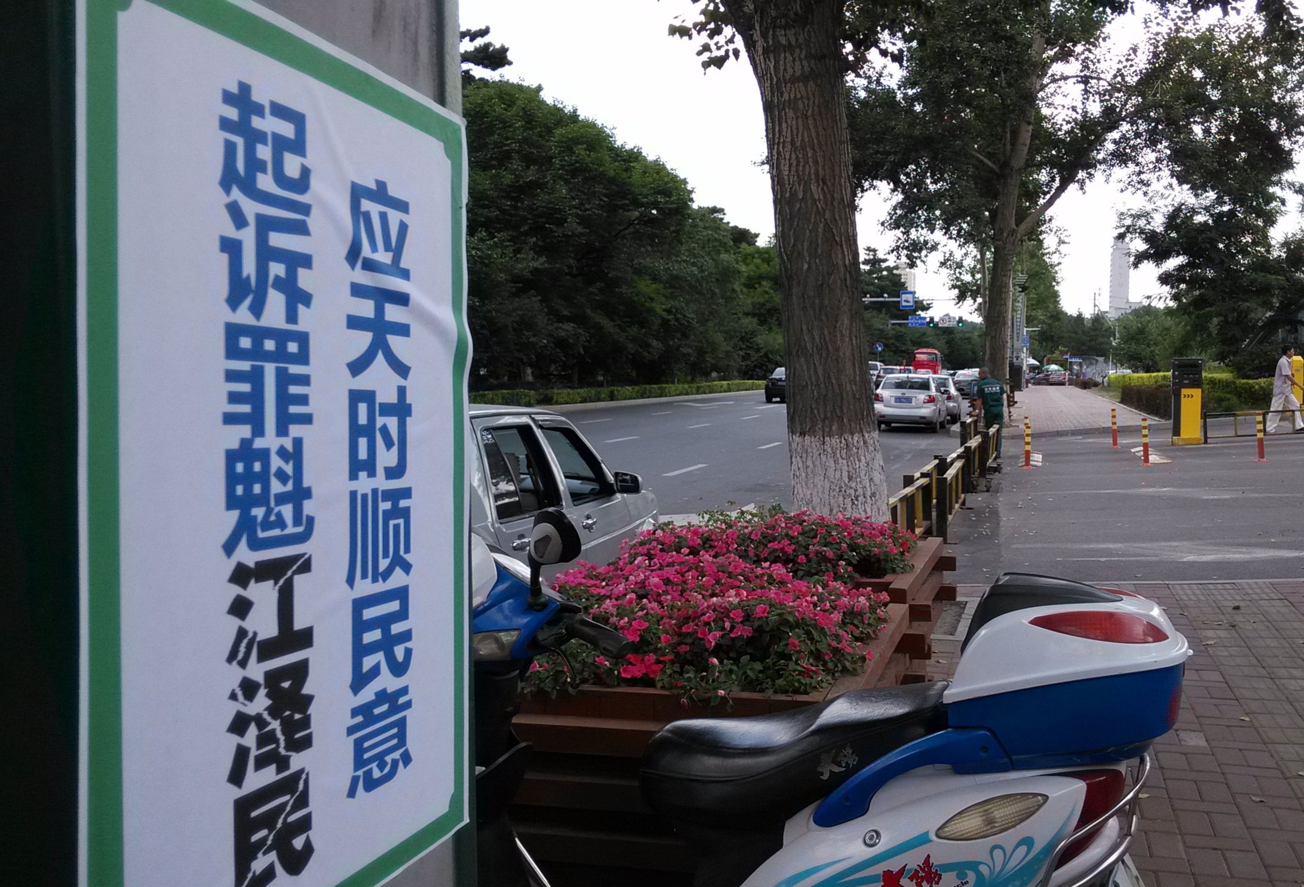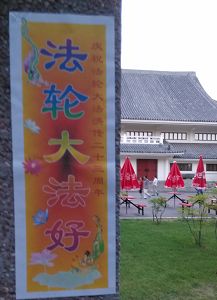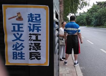 标语上书写着:“法轮大法好”,“真、善、忍好”,“10万人在中国起诉江泽民”,“起诉江泽民还人间正道”,“审判江泽民还法轮功清白”,“停止迫害法轮功把江泽民送上法庭”,“全民起诉江泽民停止迫害法轮功”,“全国起诉江泽民尽显天意民心”,“海内外纷纷起诉江泽民结束迫害法轮功”,“起诉江泽民上天佑中华”。