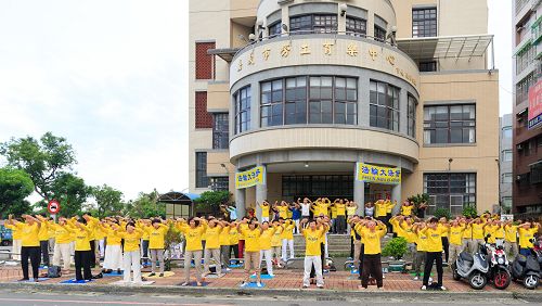 ![]() 图1-3:二零一五年八月十六日,来自南台湾二百多个炼功点的辅导员在嘉义市劳工育乐中心一起晨炼。 |