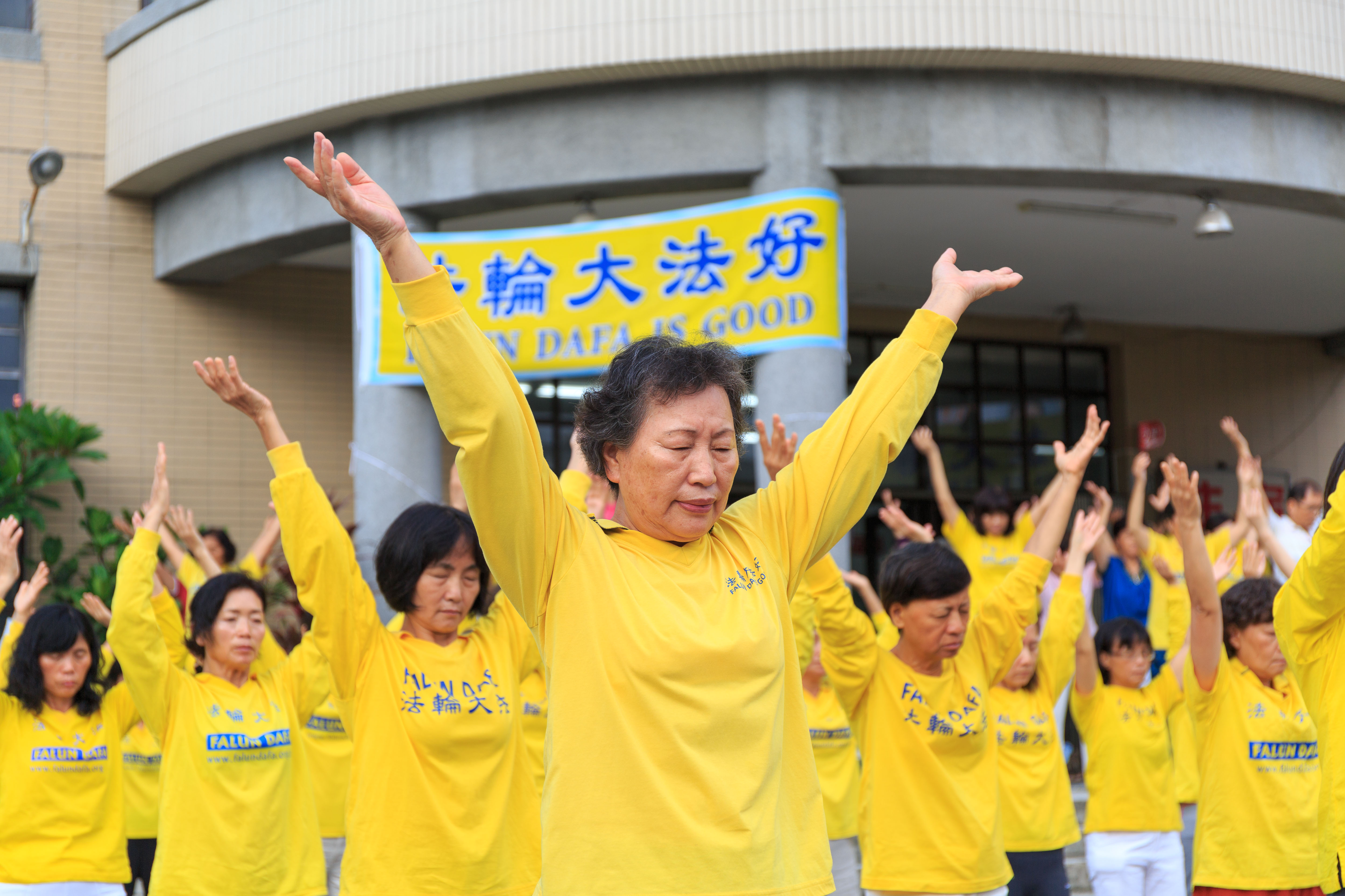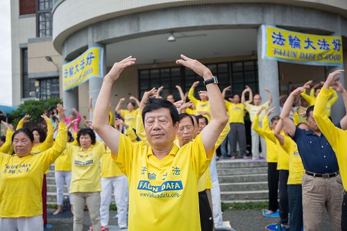 新港炼功点晨炼时原来都是固定一个人拿音乐播放器,时间一久,觉得这位同修太辛苦了,就跟同修交流:“拿播放器是非常神圣的,而且还可以建立威德,为什么大家不轮流拿呢?”经过交流,同修每个人轮流拿一个月,做早餐生意的同修就负责星期日。刚开始新港炼功每天只炼一小时。学法中,看到师父常说五套功法一步到位,就觉得这样炼的时间不够,后来秀凤又跟同修交流把时间提早到四点二十分就开始,每天都能炼完五套功法,上班的同修也不受影响。因为精進不断,学炼的人也越来越多。