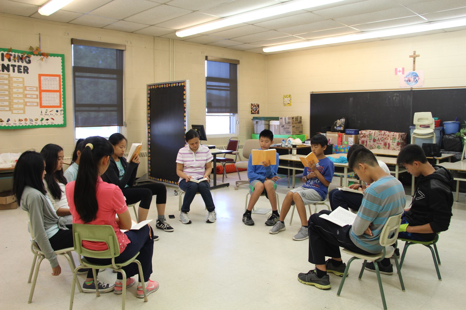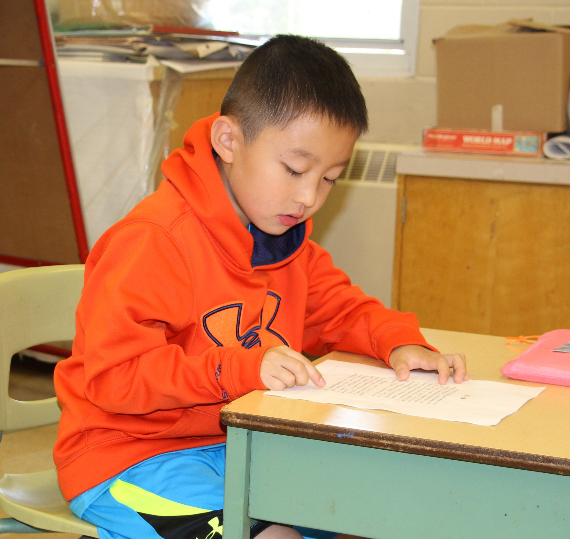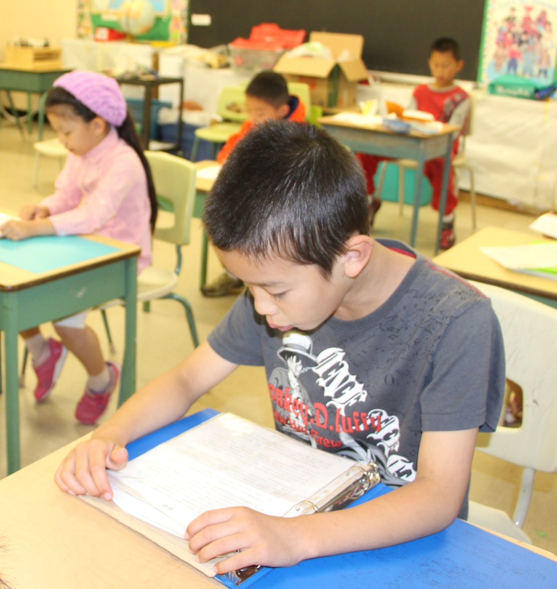 今年十岁的Ryan Zhou,妈妈每年都从密西沙加把他送到多伦多来上明慧学校。Ryan是个很认真和憨厚的孩子,开始时也不怎么认字,但他不怕别人说自己不识字,他总是认真地学,努力读中文《转法轮》,还常常去教比他还识字少的六岁的殿殿。