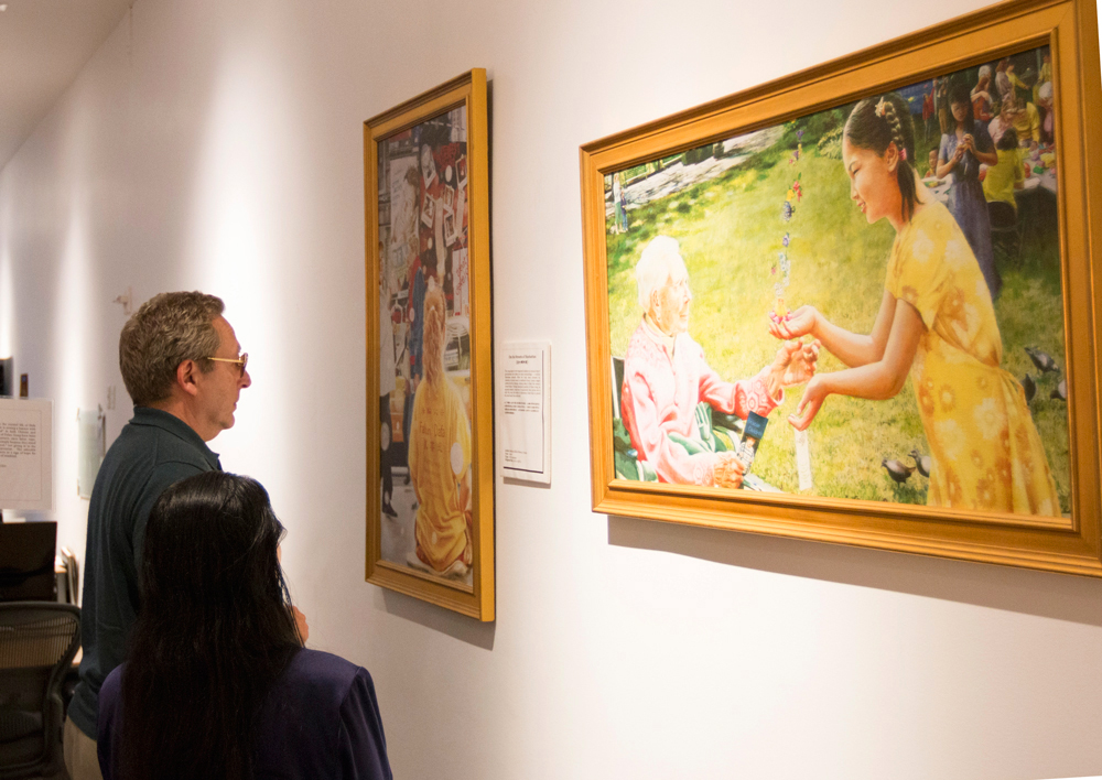 旧金山寸土寸金,要想找到办画展的地方,并非是件容易的事。尤其是在旧金山市中心商业集中地带,通常要付很高的租金。据画展的协调人张亮先生介绍,当慈善画廊在得知“真善忍美展”传达慈悲、善良的内涵时,便无偿为这次画展提供画廊。