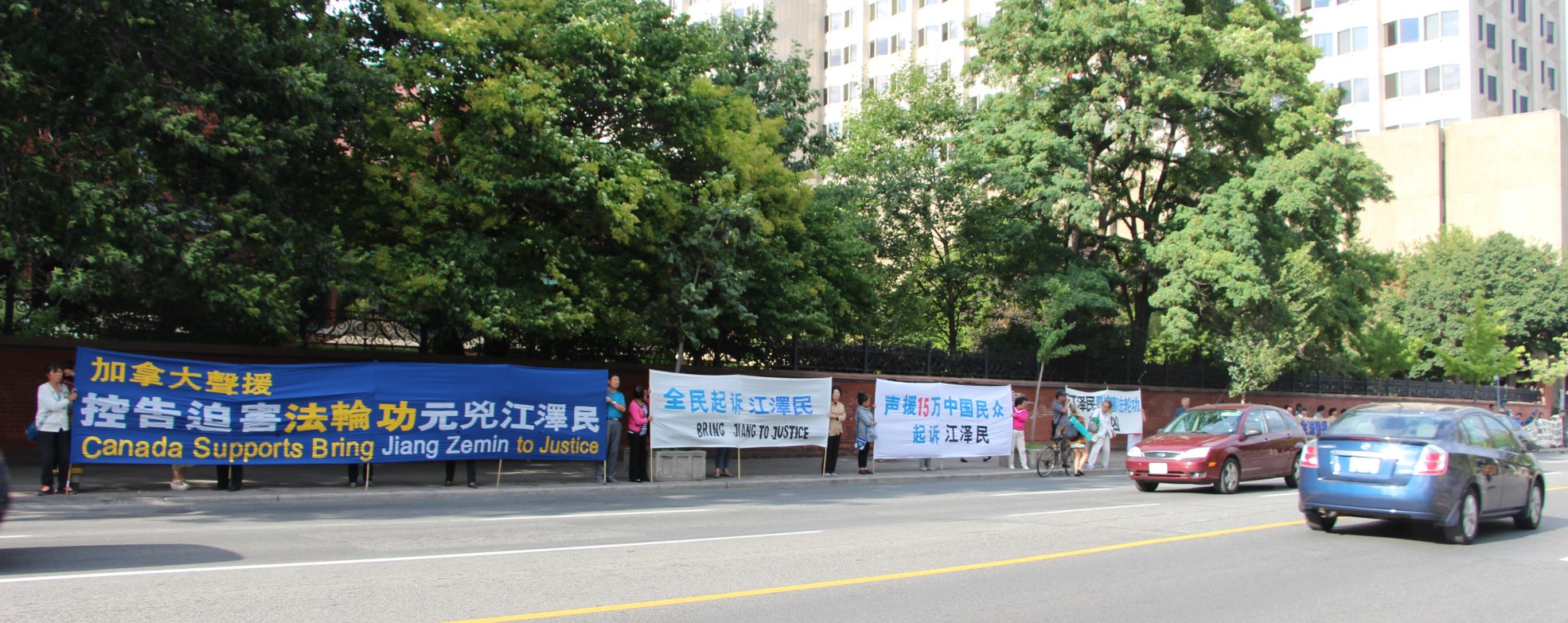 据《明慧网》报道,从二零一五年五月底到八月二十日,已有超过十五万七千名海内外法轮功学员及家属向中国最高检察机关控告、起诉前中共头目江泽民迫害法轮功的罪行。国际社会对此纷纷表示支持,海外各地法轮功学员举行声援中国大陆的诉江大潮活动,共同谴责中共暴行。到目前为止,多伦多已有近百位法轮功学员邮寄了刑事控告书,其中多人已收到回执。