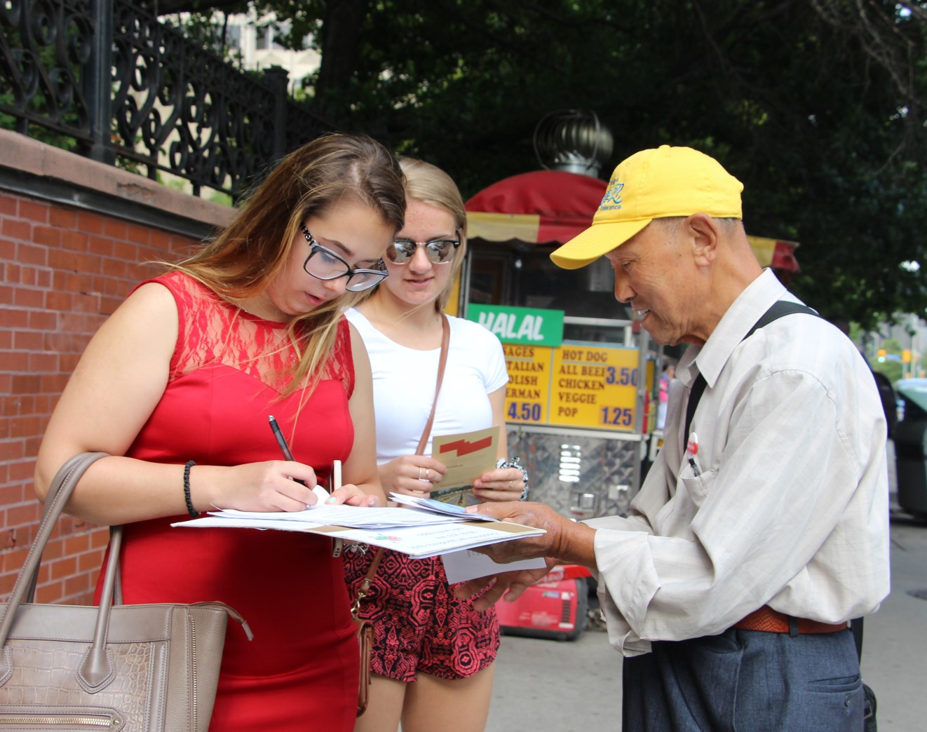来自美国佛罗里达的姐妹俩Samy Delva 和Nyhenflore Delva 在签名表上签完名,姐姐Samy说:“人都应该有信仰自由,因为信仰而被摘取了器官,那真是不可思议的事情;因为做一些平和的炼功而受到迫害,那都是不可思议的。所以我们必须都来制止这场迫害。”