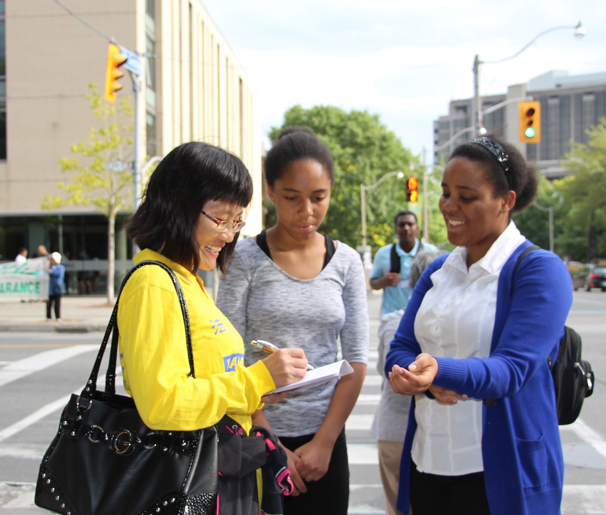 多伦多儿童书籍作家Desree Francois经过现场,毫不犹豫地在征签表上签名。她说:“我知道这场迫害已经很长时间了,我在很久以前也听说了,迫害绝对是错的。谁都没有权力可以摘取别人的器官,就因为有钱?有权?那是没有人性的做法。”她表示这场迫害该停止了。