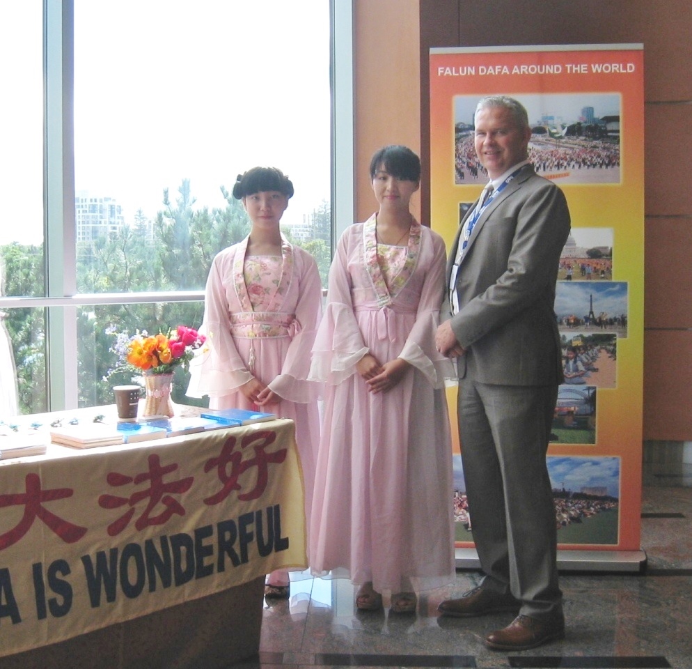 他还表示他在展位处学到了很多东西。他说:其实我知道,在中国不仅法轮功团体受迫害,而且还有西藏及其他族裔群体也受到中共的迫害。