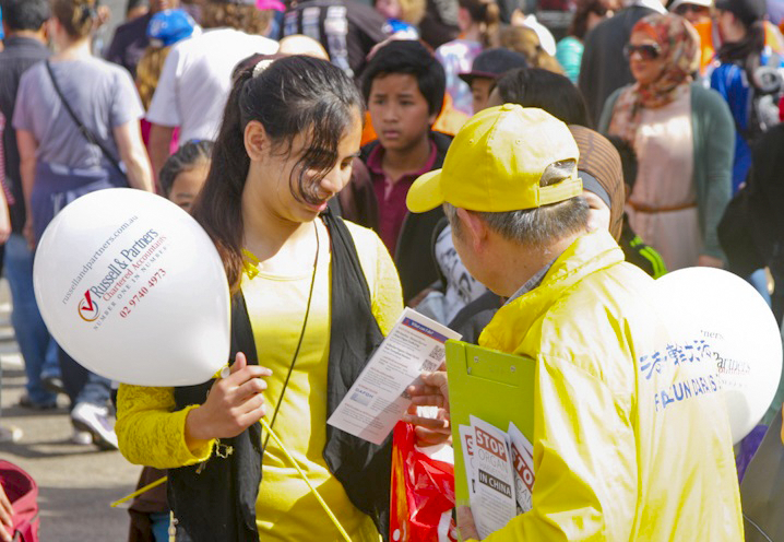当天游行庆典活动中,澳洲SBS电台(SBS Radio)请天国乐团当场演奏了《法轮大法好》、《送宝》、《神圣的歌》等五首乐曲向该电台听众播放,市民们随着震撼人心的旋律而舞动、鼓掌,场面感人。