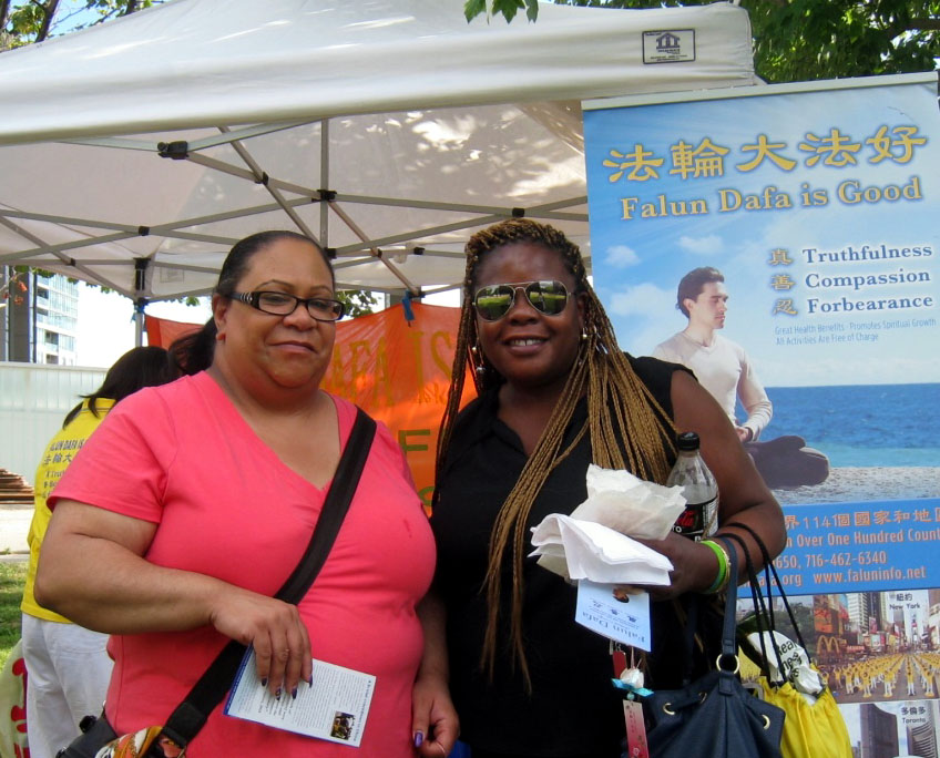 来自于多伦多市在公共交通部门工作的英格丽•克劳福德(Ingrid Crawford)女士和来自汉密尔顿的儿童与青年工作者叙泽特•理查兹(Suzette Richards)女士一致认为,发生在中国的对法轮功学员的迫害简直是太坏了!她们表示,人们应该自由地在中国炼法轮功,而不应该被杀害、被活摘器官牟取暴利。她们在制止中共活摘法轮功学员器官的征签表上都签了名,并跟法轮功学员说:“希望你们能够征得很多的签名!”