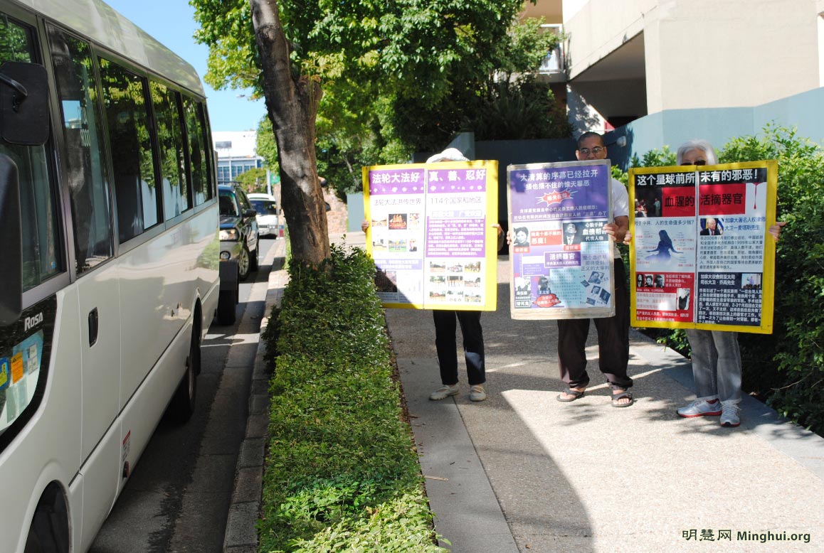 ![]() 法轮功学员在澳洲布里斯本中国城举展板,向中国游客讲真相。 |