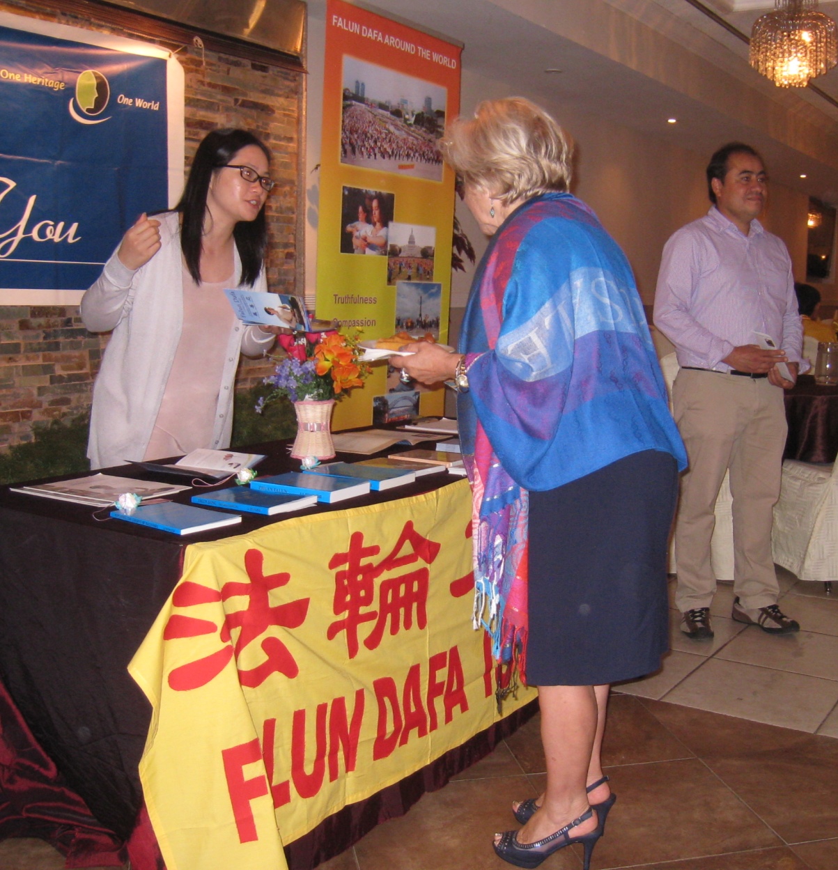 宴会期间,各位贵宾纷纷来到法轮大法展位处了解法轮功真相、拿取资料、合影留念及表示对法轮功功法的喜爱和对法轮功学员反迫害的支持,有的贵宾还表示会帮助法轮功学员。由于法轮功学员出色的表现,作为本次活动联系方的大.纪.元;报社的《大.纪.元;时报》被授予“桥接世界文化的全球最好中文报纸”奖。