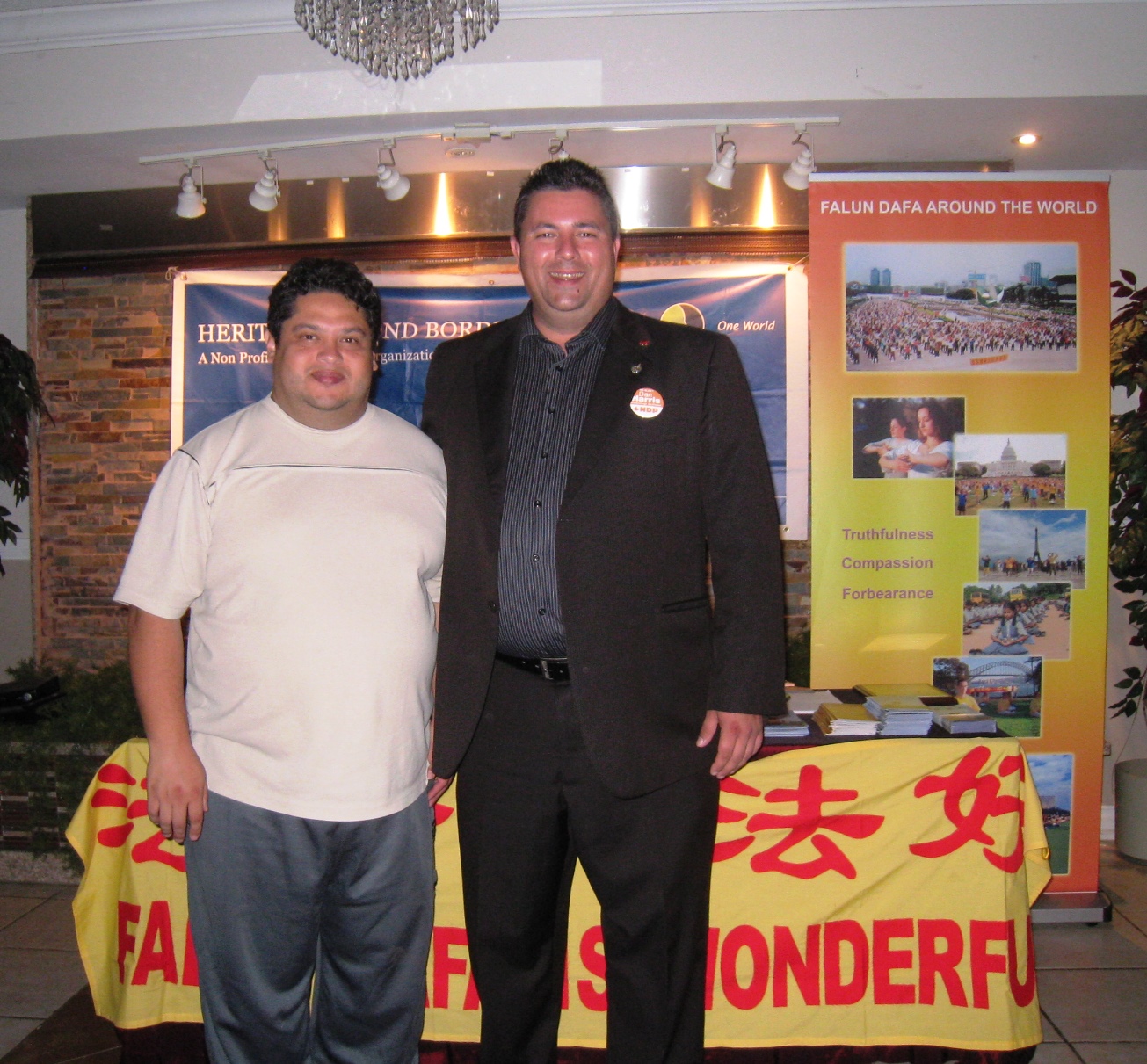 加拿大国会议员丹·哈里斯(Dan Harris)也参加了本次庆祝宴并与法轮功学员合影留念。他表示,在中国,人们不敢公开修炼法轮功,是因为中共的独裁。谈到最近的诉江大潮,哈里斯表示,仅用国际法把江泽民送上审判台是一件具有挑战性的工作,但如果很多人都关注并支持,我相信会给中共政府施加压力让其改变。因为当人们都开始意识到这个问题时往往变化就会发生。