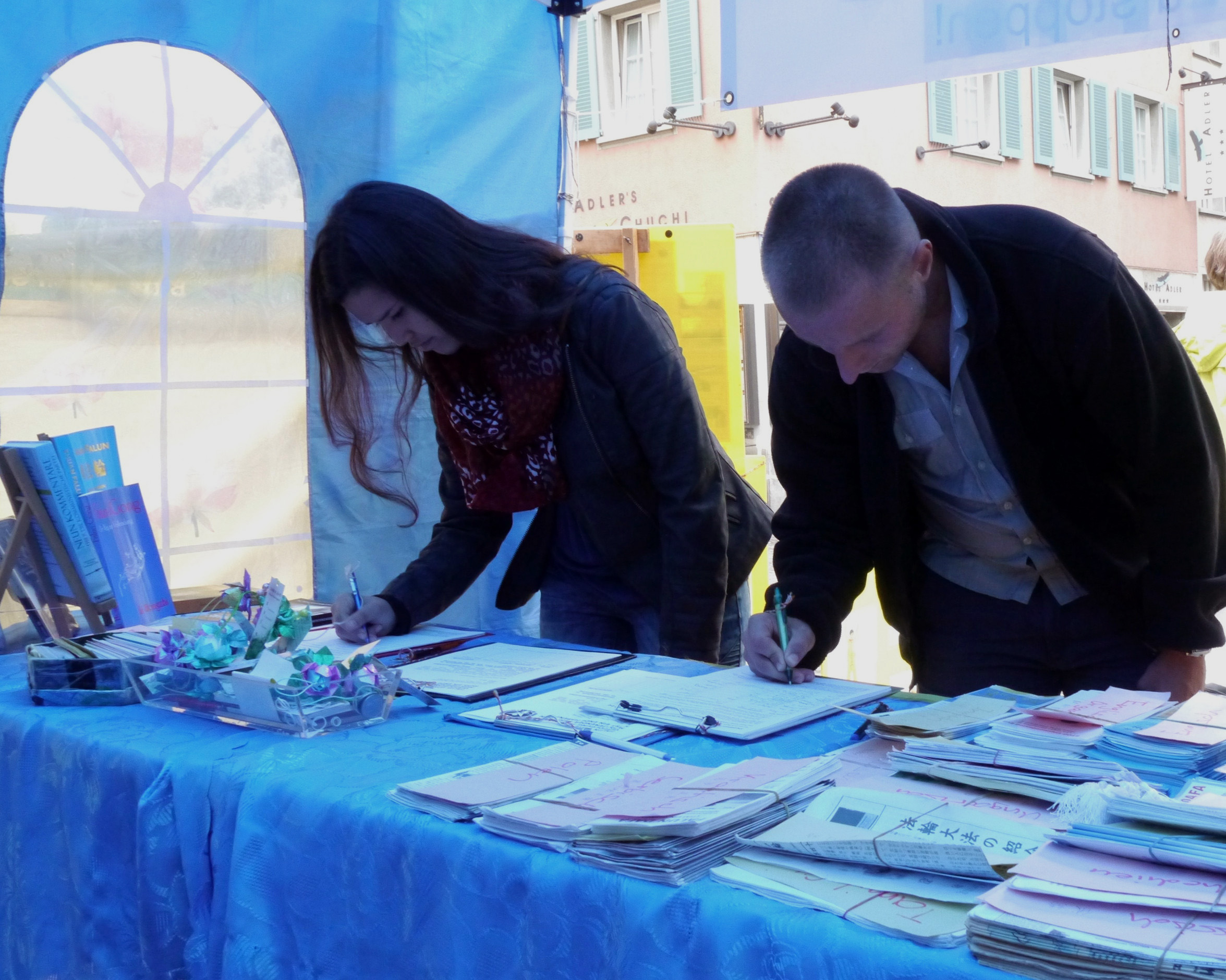 ![]() 人们在老城区希尔申广场签名制止中共迫害法轮功 |