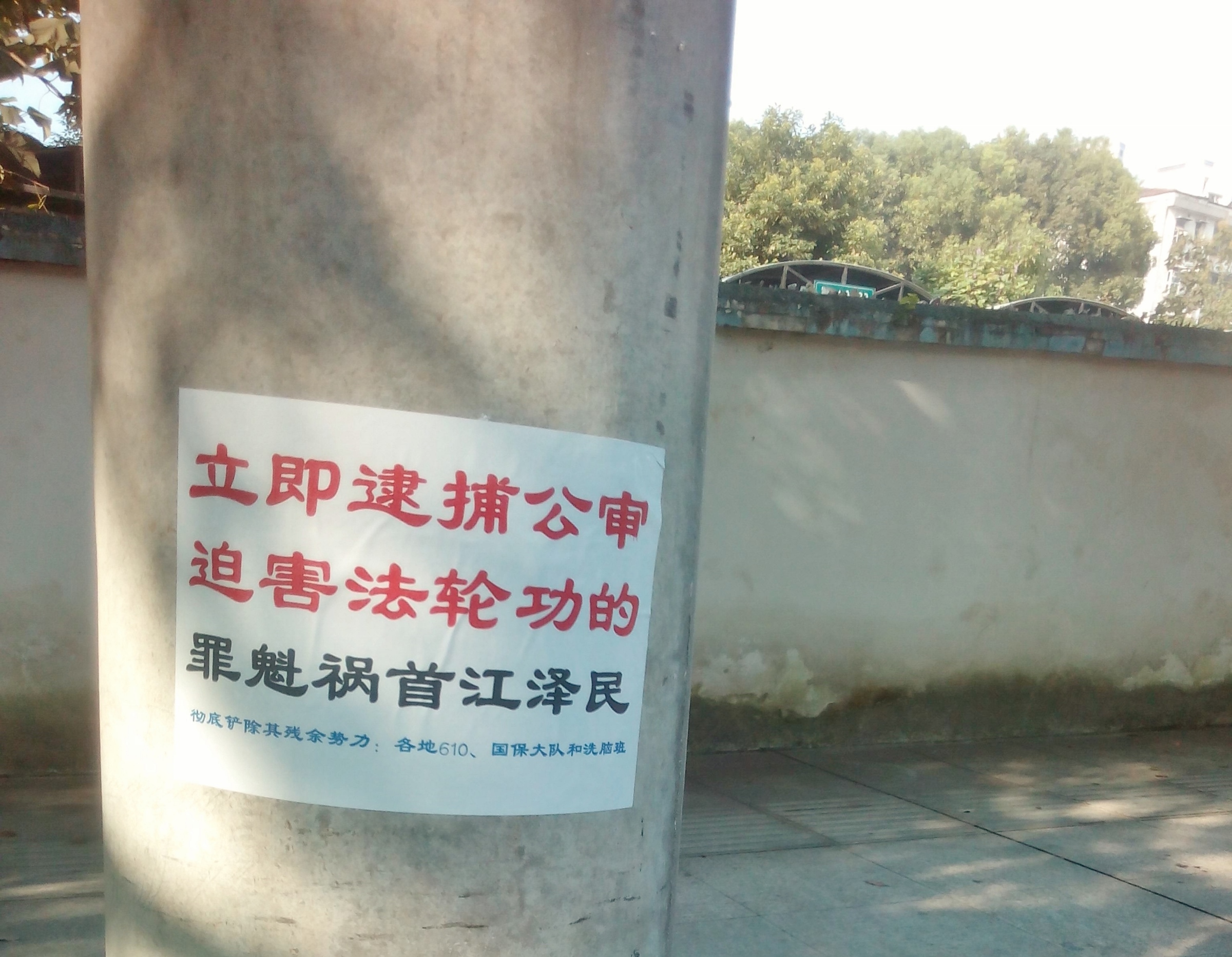 南京市街头人们见到“全球起诉江泽民”、“全球控告江泽民”等真相标语。以无声的语言告诉迷中的人们,尽管法轮大法蒙冤十六载,修炼人的意志从未动摇。江氏集团的罪恶即将被清算,江泽民即被来自世界各地的人起诉。还法轮大法清白的一天即将来到。