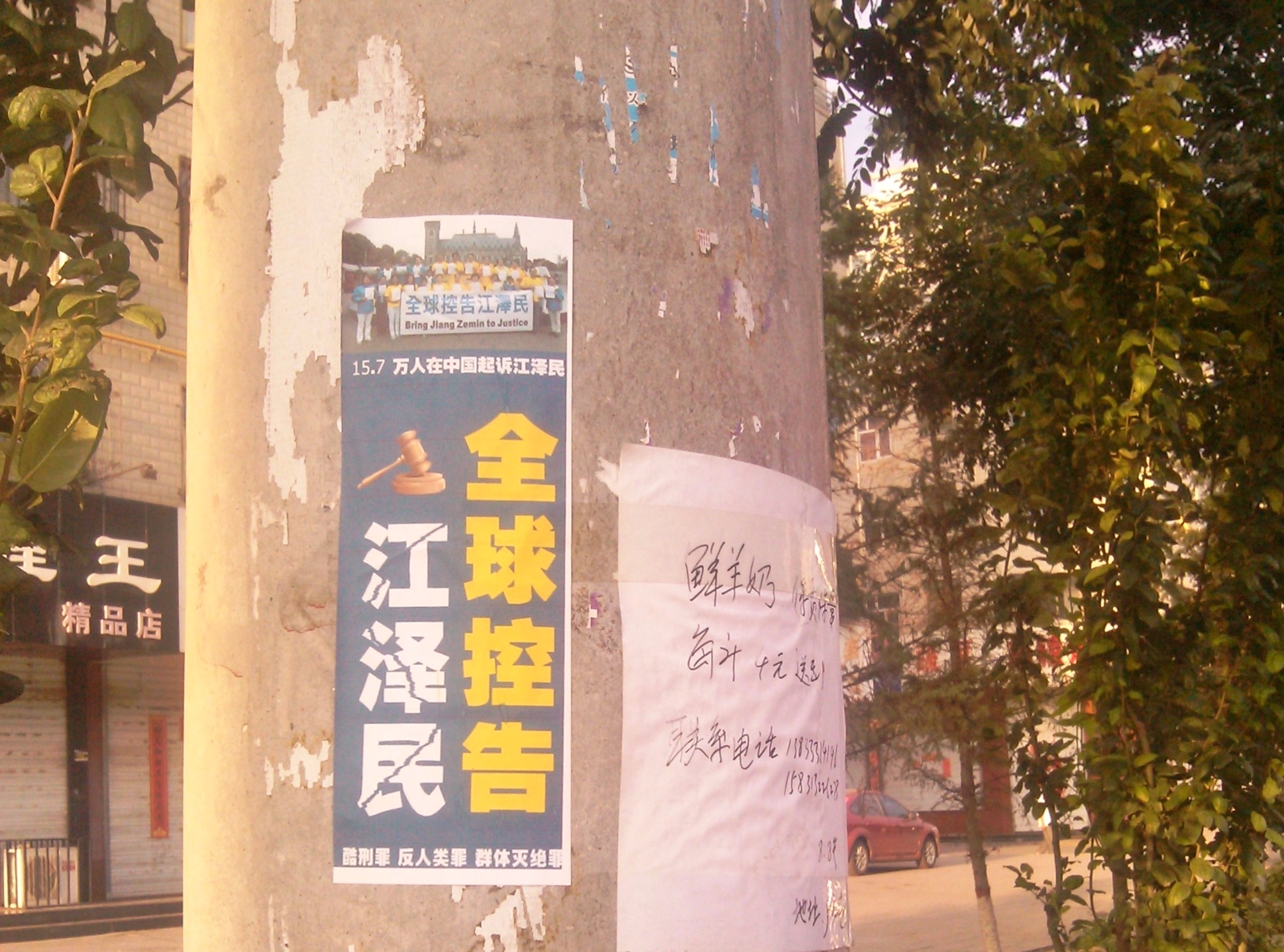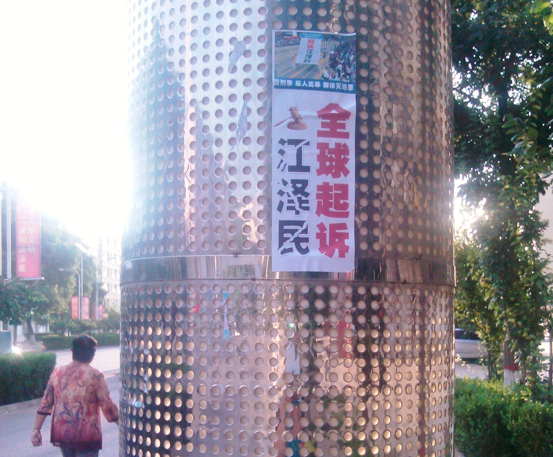 【明慧网二零一五年九月十四日】自二零一五年五月,法轮功学员和他们的家人们纷纷向最高检察院和法院投寄诉状,控告江泽民发起对法轮功的迫害,造成难以计数的法轮功学员遭受绑架、关押、劳教、判刑、洗脑等迫害,他们的家人受到株连。诉江大潮的信息也通过真相条幅、不干胶、传单等形式在中国大陆广为流传。