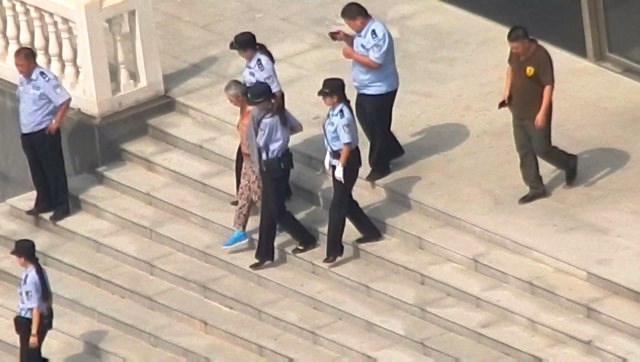 ![]() 非法庭审结束,文杰被法警带出法院。 |