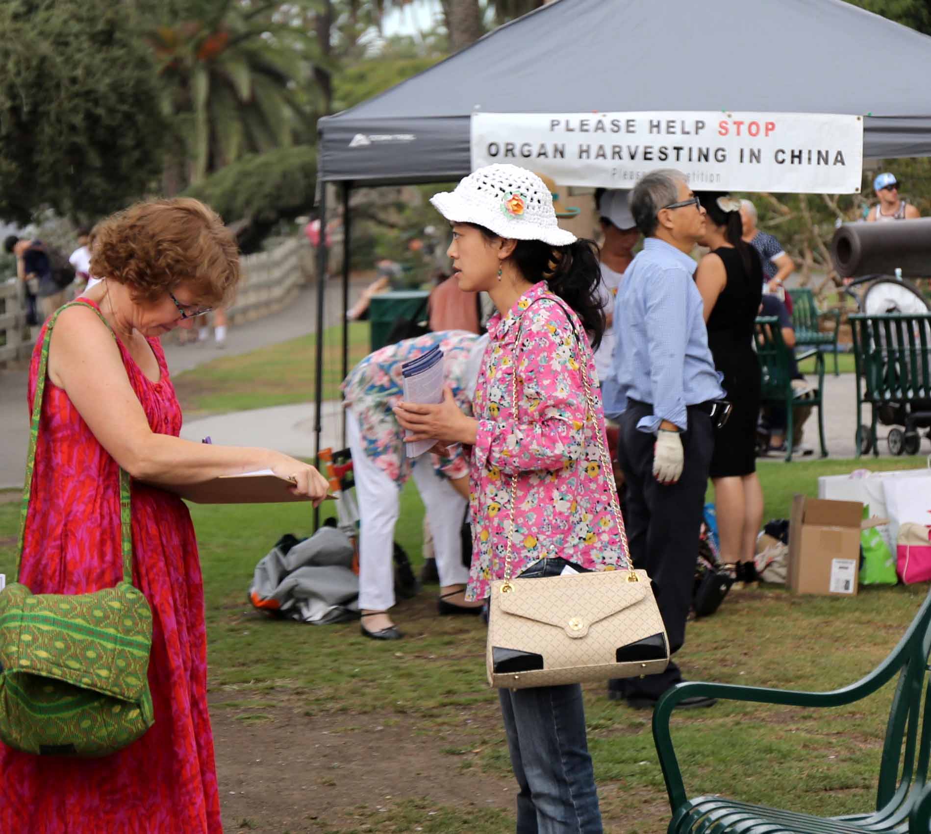 ![]() 图3:民众在支持诉江、反对强摘法轮功学员器官的请愿书上签名 |