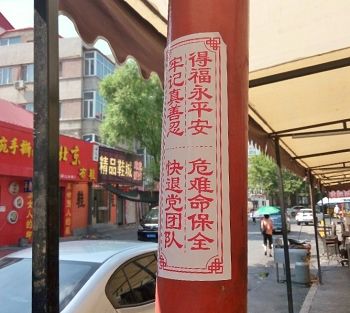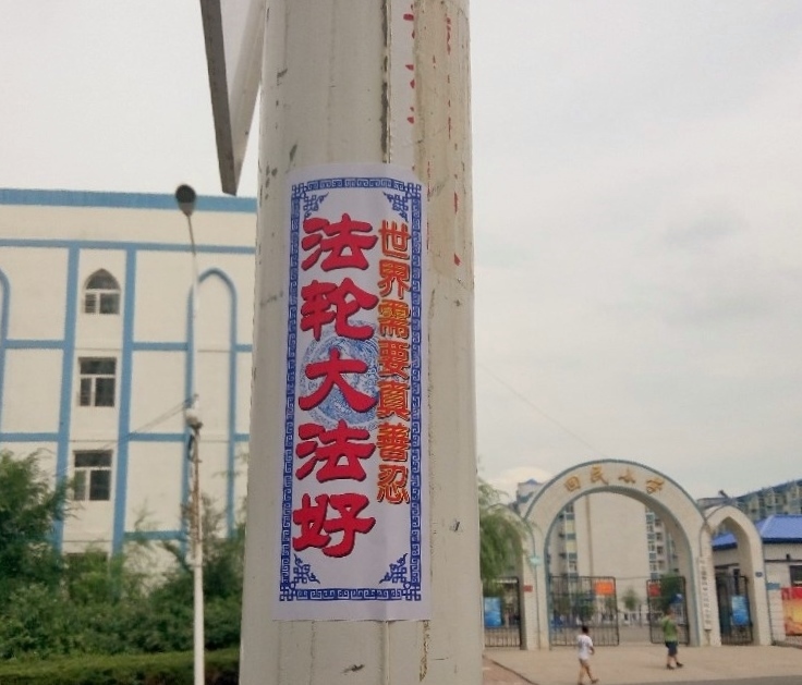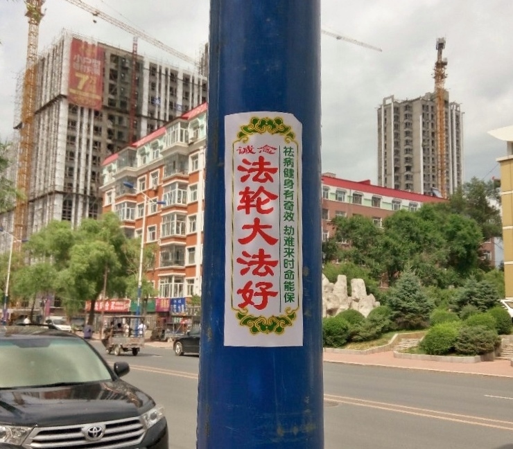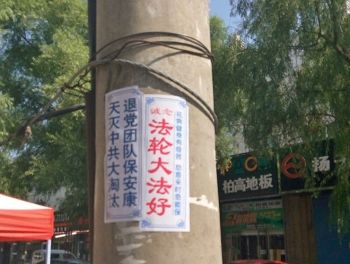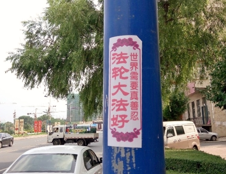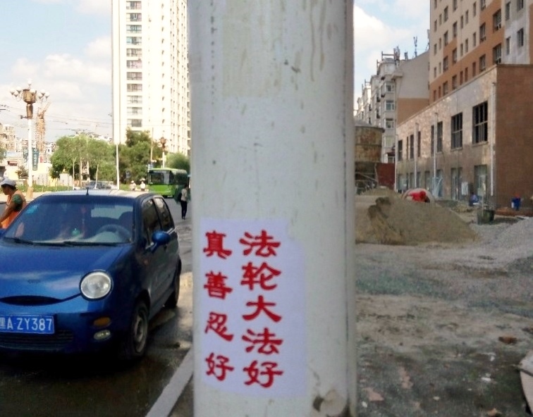 通讯员黑龙江报道)在黑龙江省哈尔滨市阿城区的街头巷尾、闹市区,人们可以看到“法轮大法好”、“世界需要真善忍”、“牢记真善忍 得福永平安 快退
