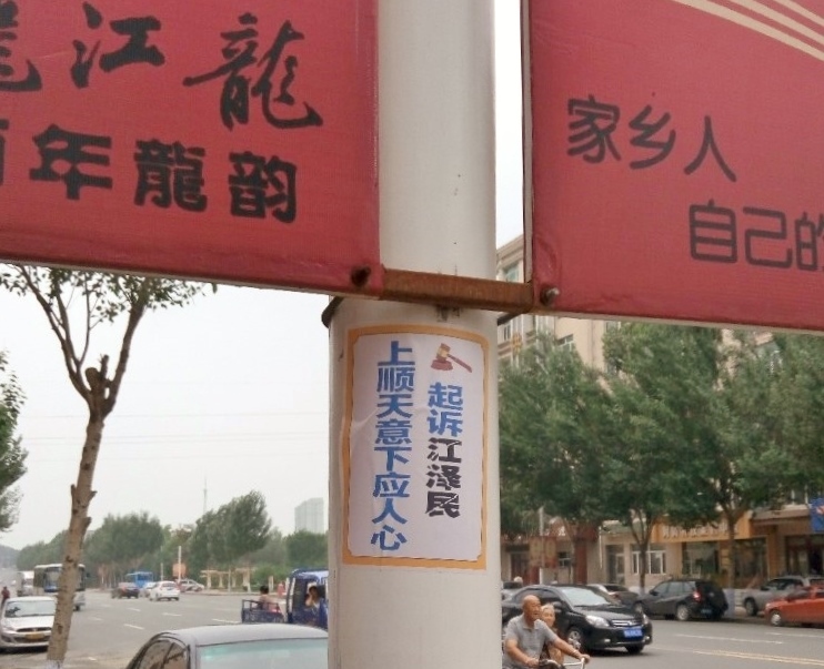 团队 危难保命全”、“起诉江泽民 上顺天意下应民心”等真相标语。