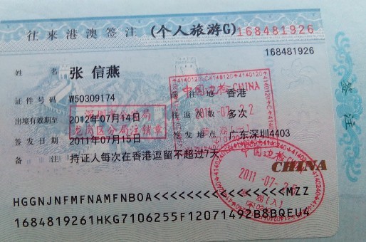 我在香港认识我先生,他是香港永久居民,我们于二零一一年八月二十五日在香港尖沙嘴婚姻登记处注册结婚。结婚当天,我就必须回中国深圳一次(因我已逗留七天,我的港澳旅游签证是逗留七天往返香港,这个签证是前些天刚申请好的,可以用一年,即一年可以多次来回香港),我先生交待我当天晚上回去中国深圳后,马上准备好所有的证件,明天一早就去向深圳当地公安局申请夫妻探亲团聚证(三个月来回一次)。
