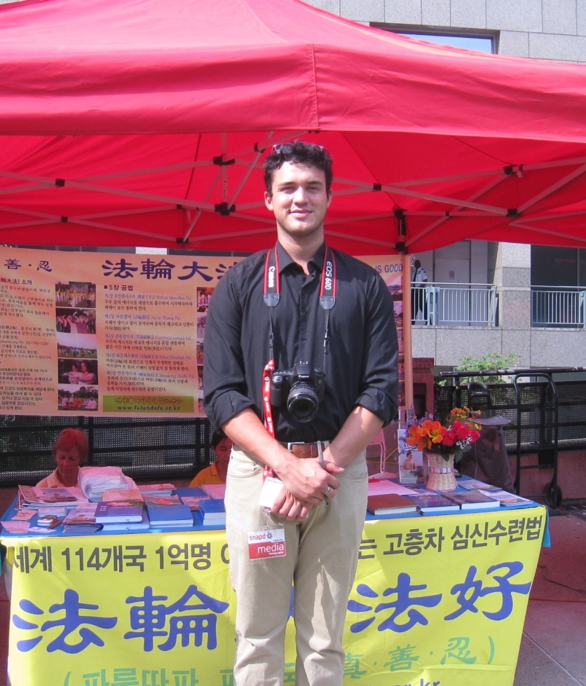 Snapd报社出版商Ian Hanecak先生看到法轮大法展位后就走过来拍照,并采访展位处的法轮功学员。在采访中,Hanecak先生问学员,附近是否有炼功点。学员告诉他,这个公园就是一个炼功点。他并询问炼功时间,学员告诉他是每星期六上午七点三十分至九点三十分。他都记录了下来,并告诉了学员这篇报道的刊登时间。