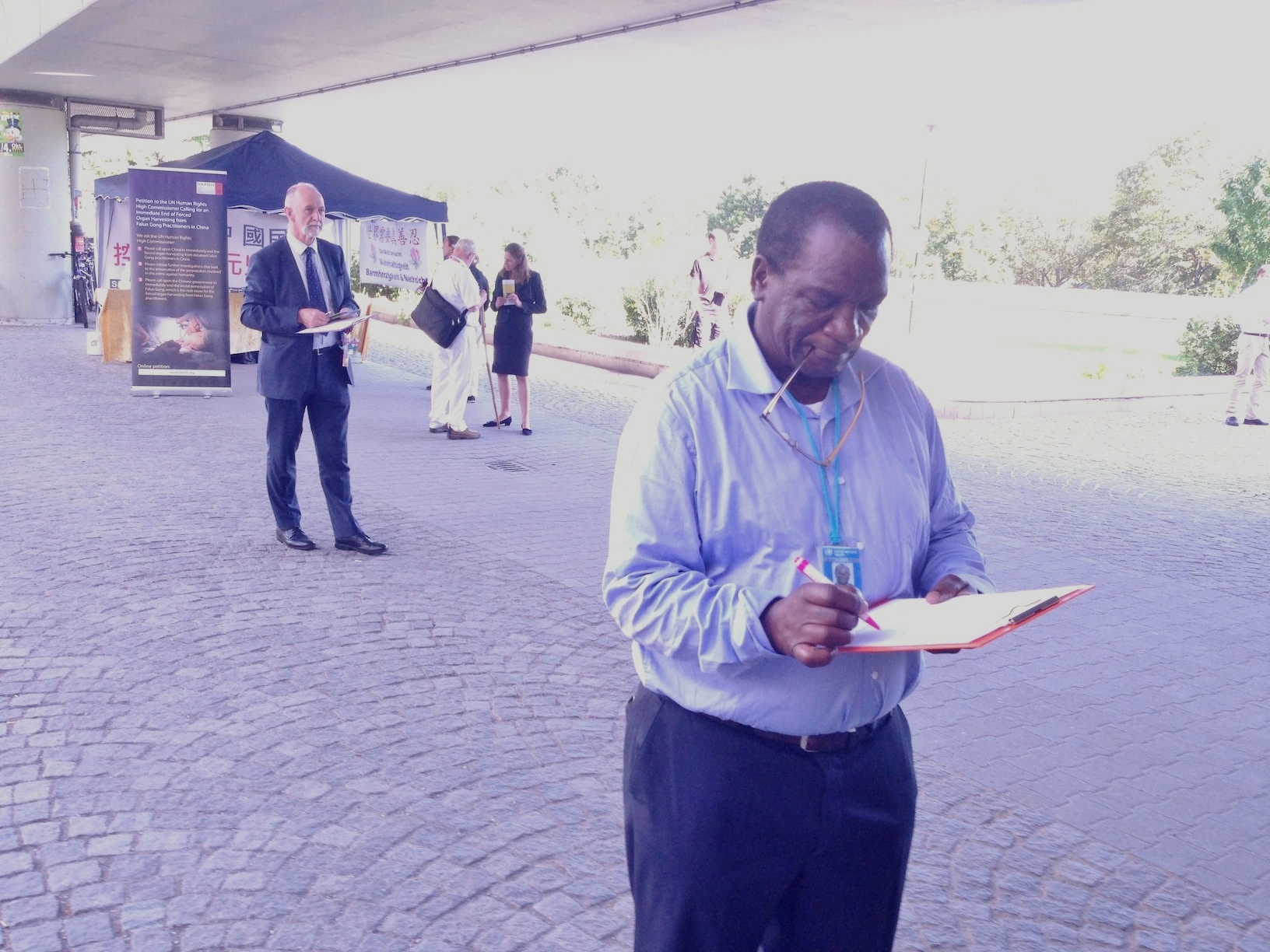 联合国大厦安全官员正式接受谴责中共活摘器官的真相信息