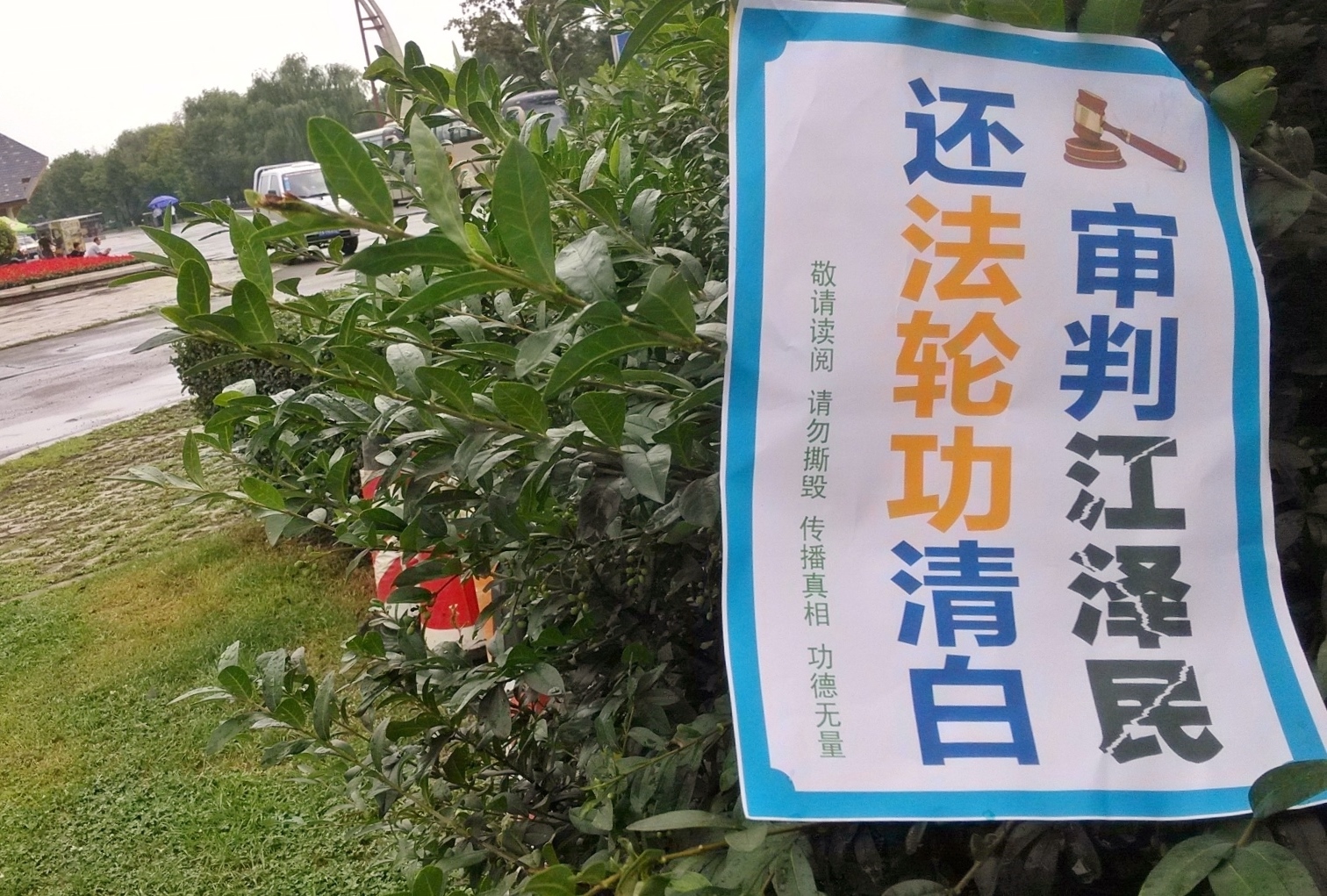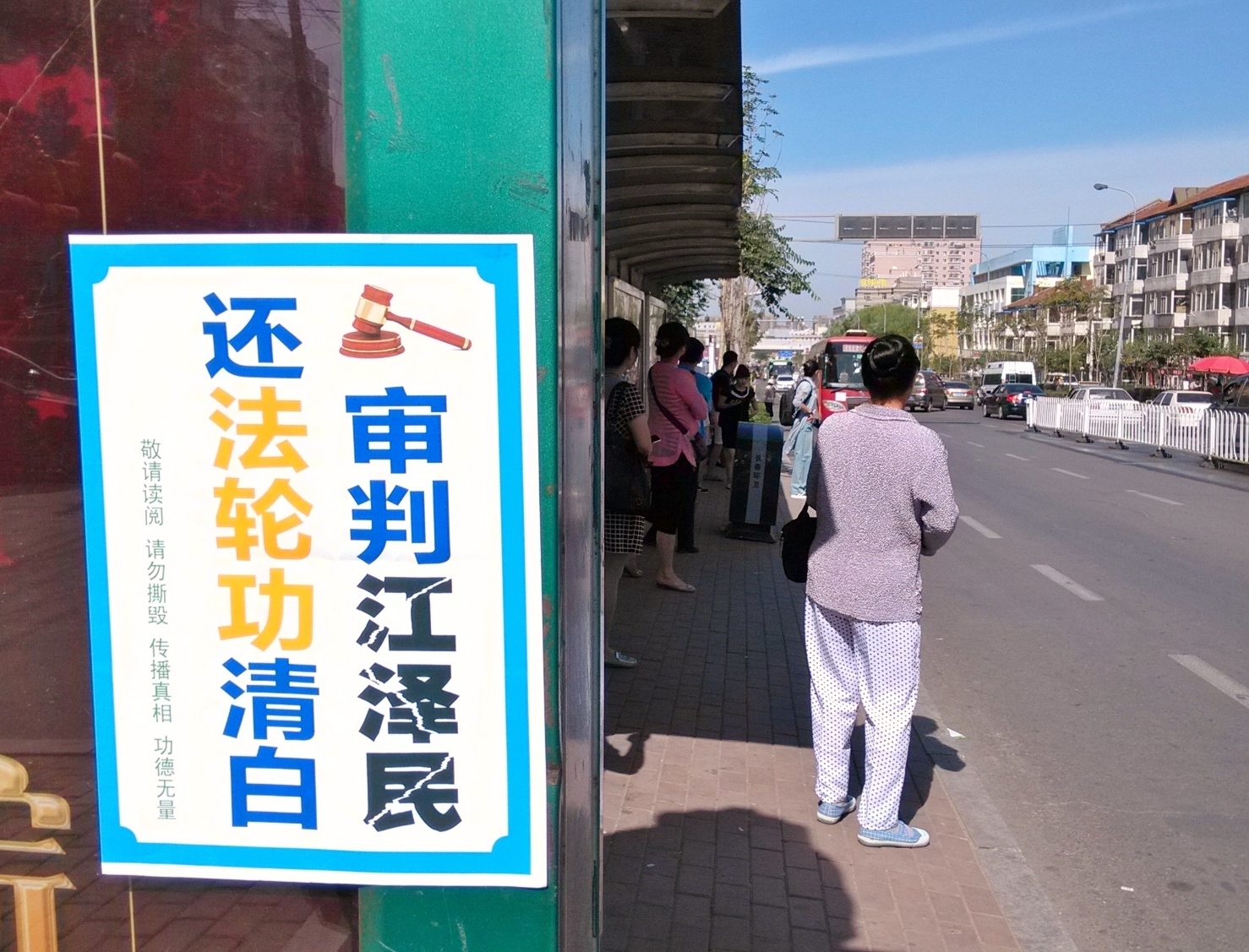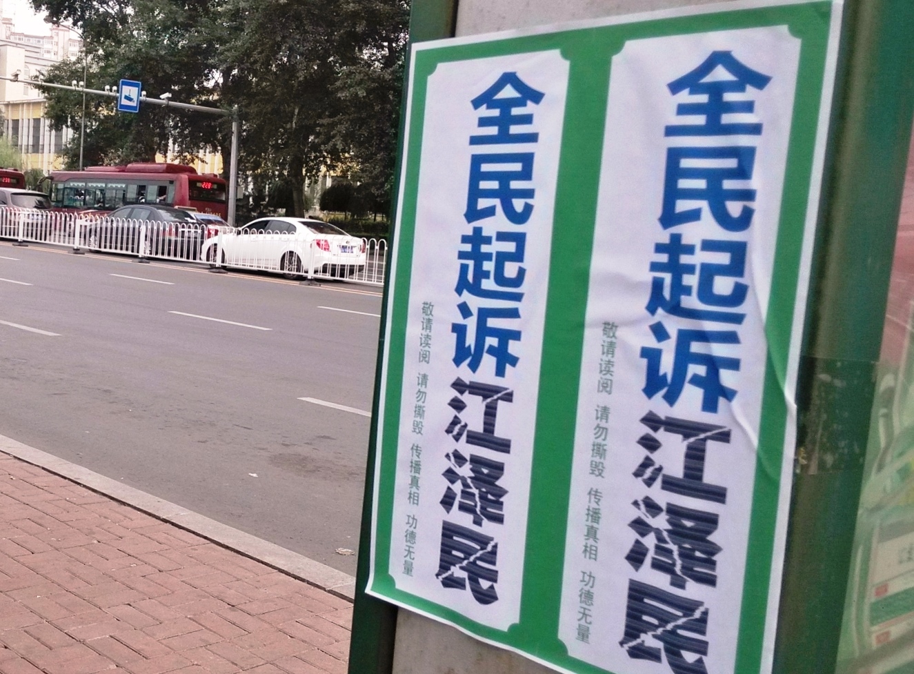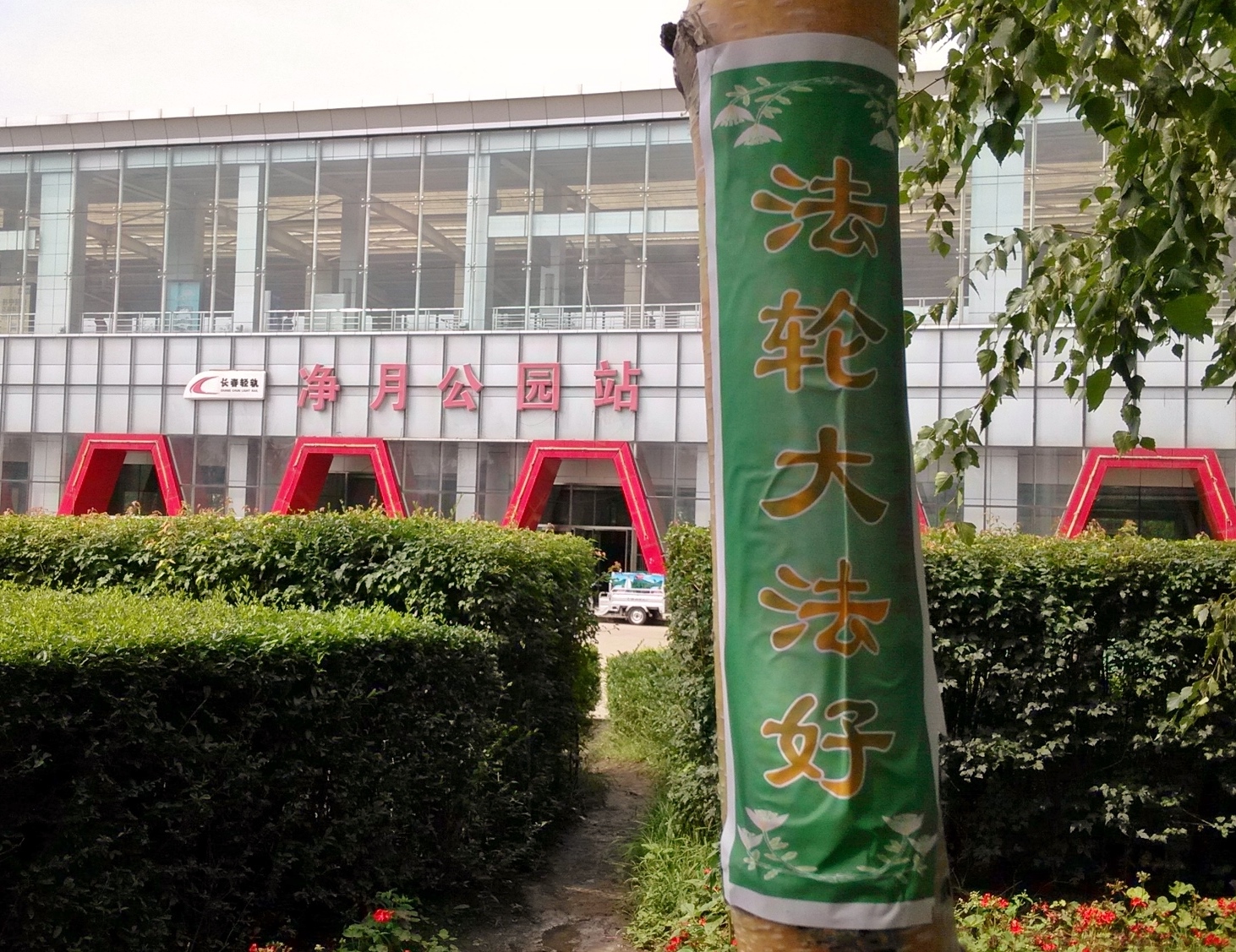 无论是远在城外的国家5A级净月潭风景区,还是近在城内的国家重点保护建筑物地质宫广场(曾经的千人炼功广场),还是公路、站点、林荫小路、广告牌匾,都可见到:“法轮大法好”、“真善忍好”、“起诉江泽民 正义必胜”、“将罪魁祸首江泽民绳之以法彰显天道公理”、“审判江泽民还法轮功清白”、“停止迫害法轮功把江泽民送上法庭”等真相标语。