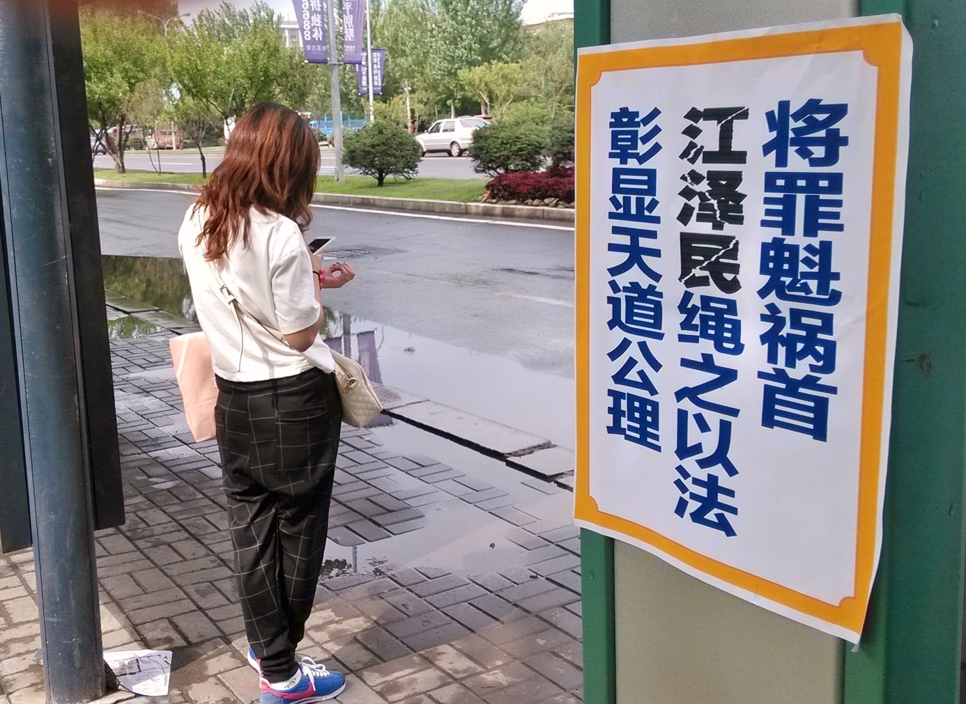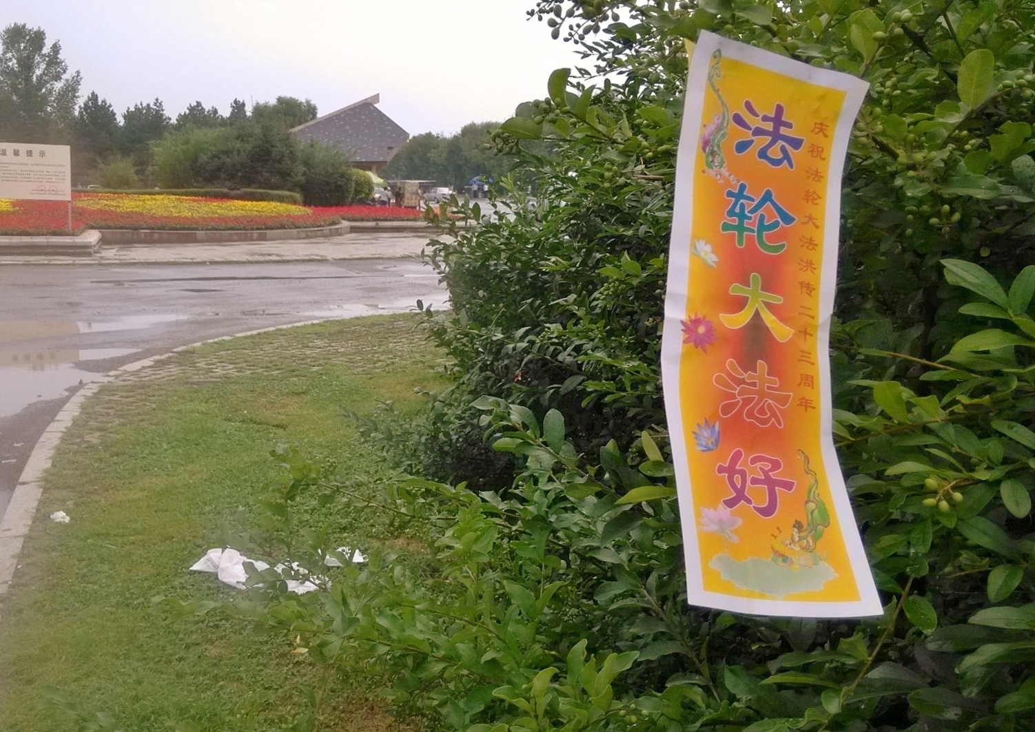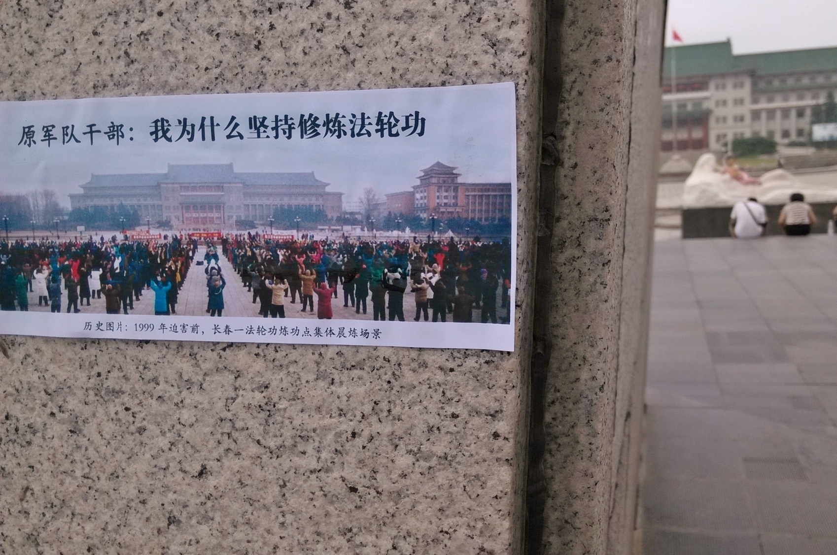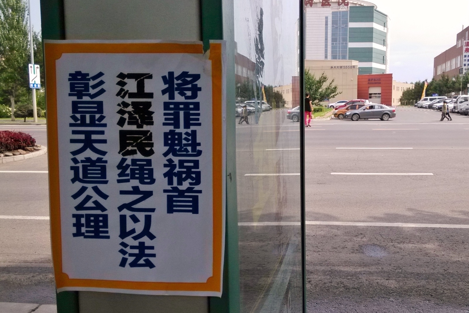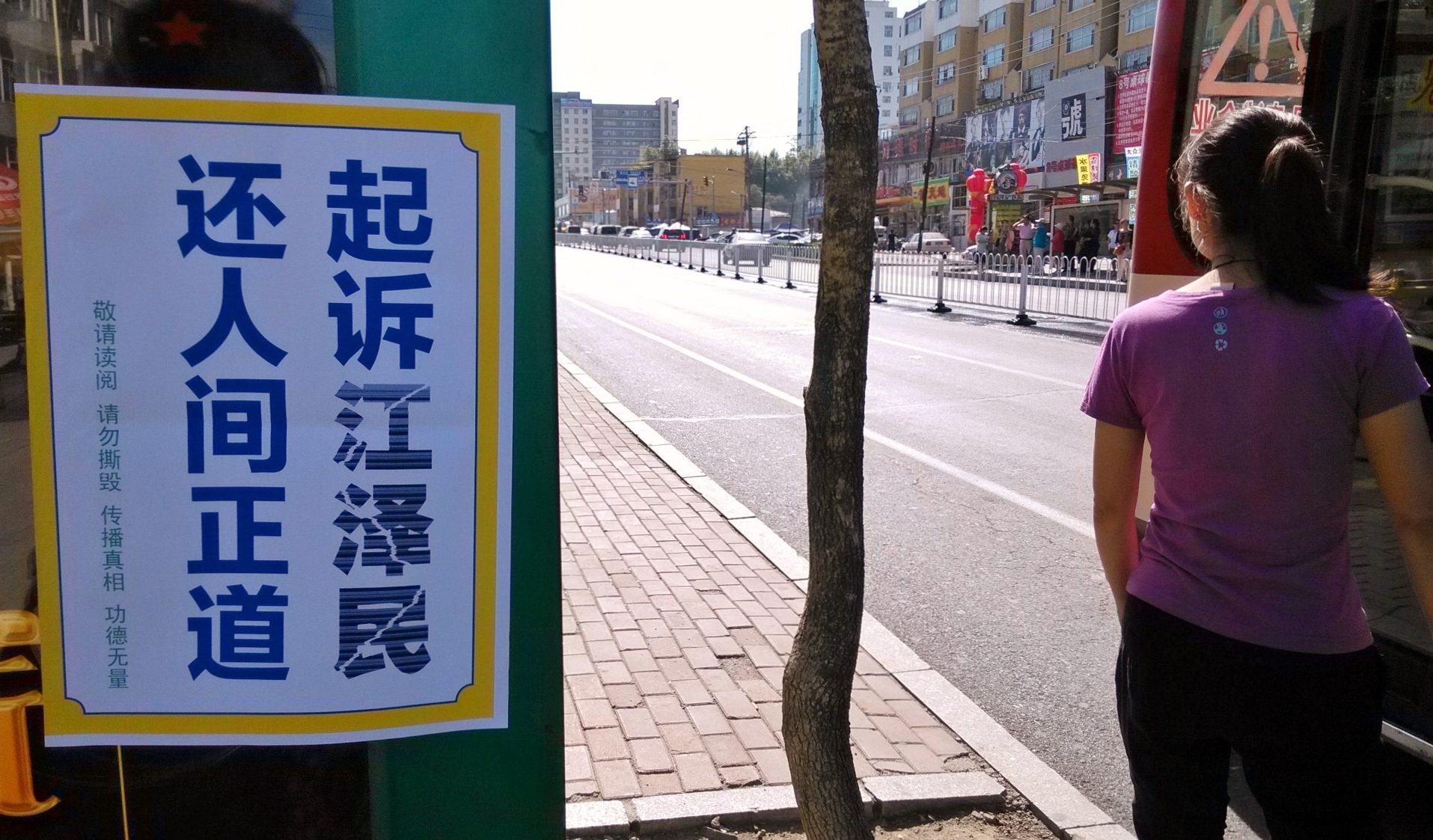 无论是远在城外的国家5A级净月潭风景区,还是近在城内的国家重点保护建筑物地质宫广场(曾经的千人炼功广场),还是公路、站点、林荫小路、广告牌匾,都可见到:“法轮大法好”、“真善忍好”、“起诉江泽民 正义必胜”、“将罪魁祸首江泽民绳之以法彰显天道公理”、“审判江泽民还法轮功清白”、“停止迫害法轮功把江泽民送上法庭”等真相标语。