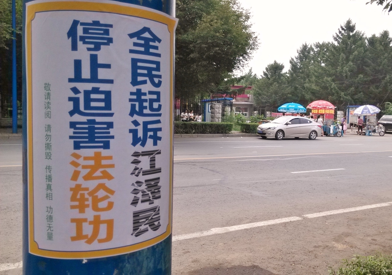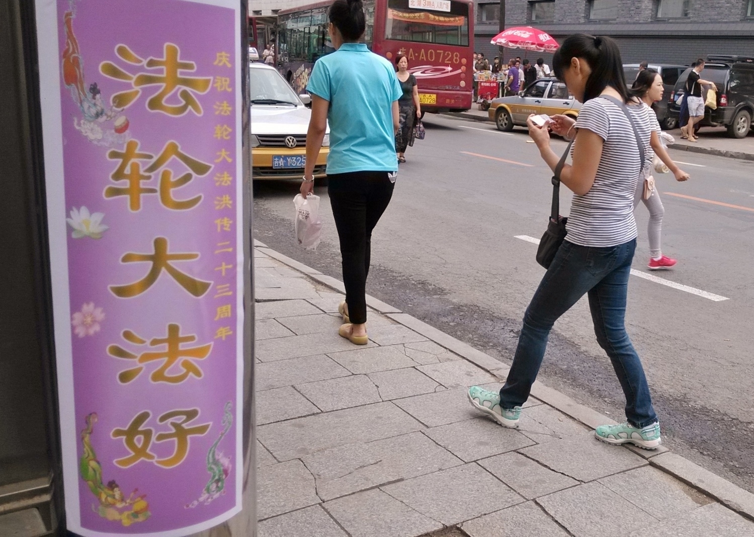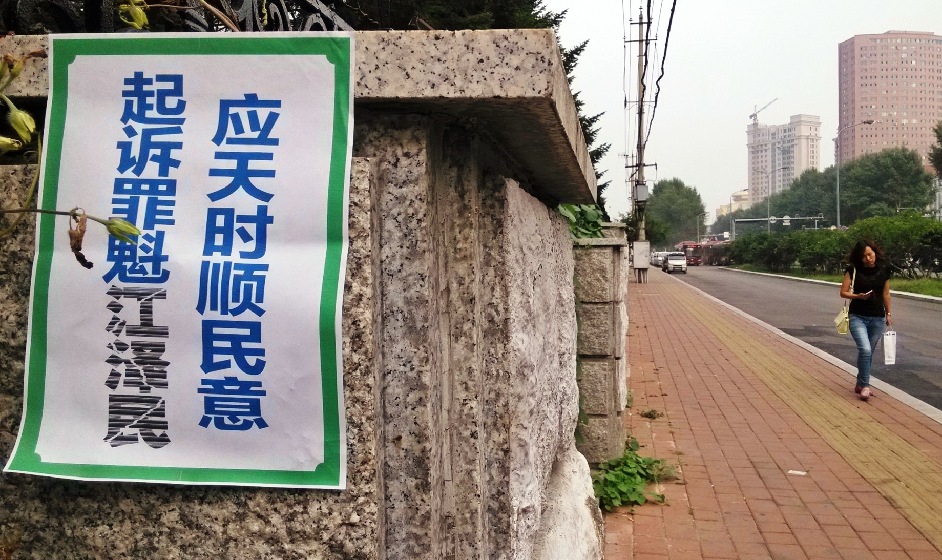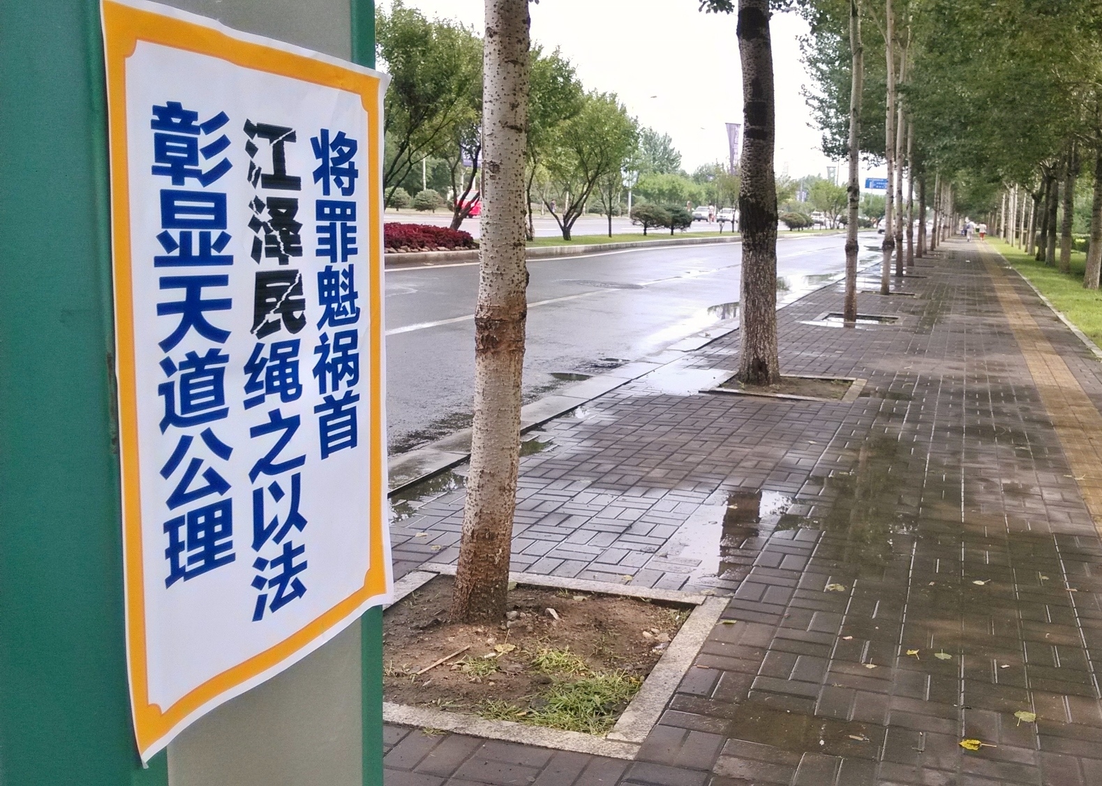 无论是远在城外的国家5A级净月潭风景区,还是近在城内的国家重点保护建筑物地质宫广场(曾经的千人炼功广场),还是公路、站点、林荫小路、广告牌匾,都可见到:“法轮大法好”、“真善忍好”、“起诉江泽民 正义必胜”、“将罪魁祸首江泽民绳之以法彰显天道公理”、“审判江泽民还法轮功清白”、“停止迫害法轮功把江泽民送上法庭”等真相标语。