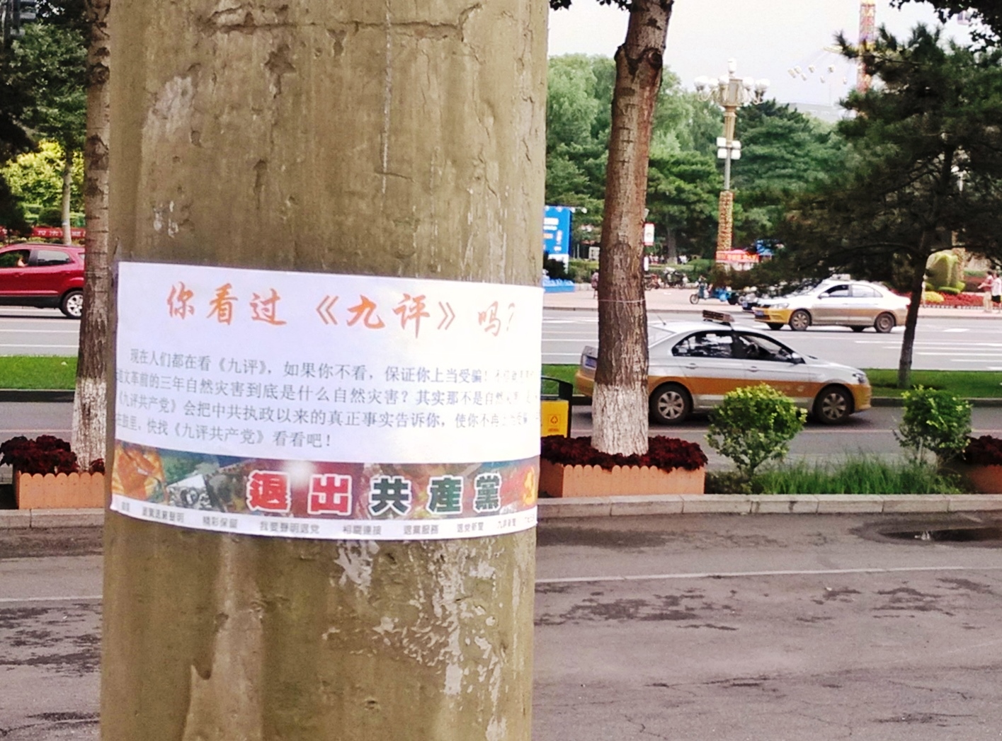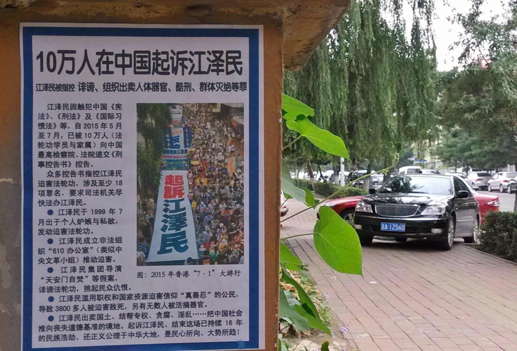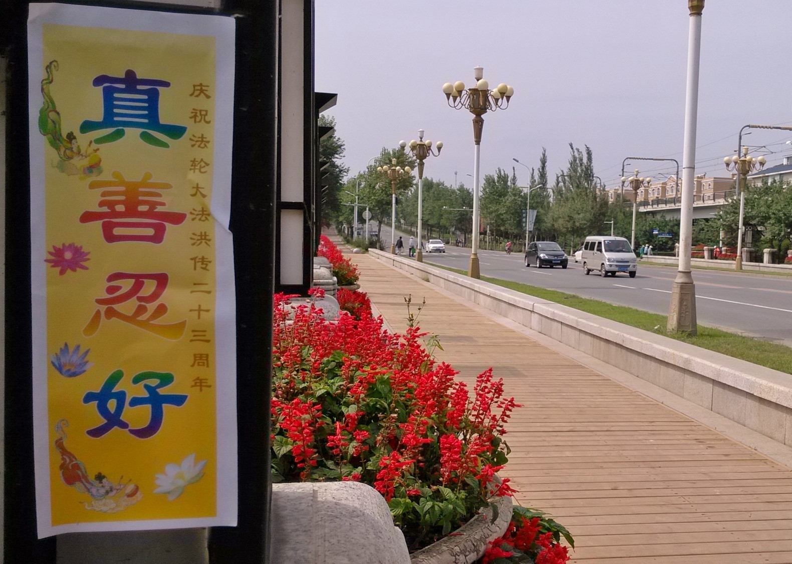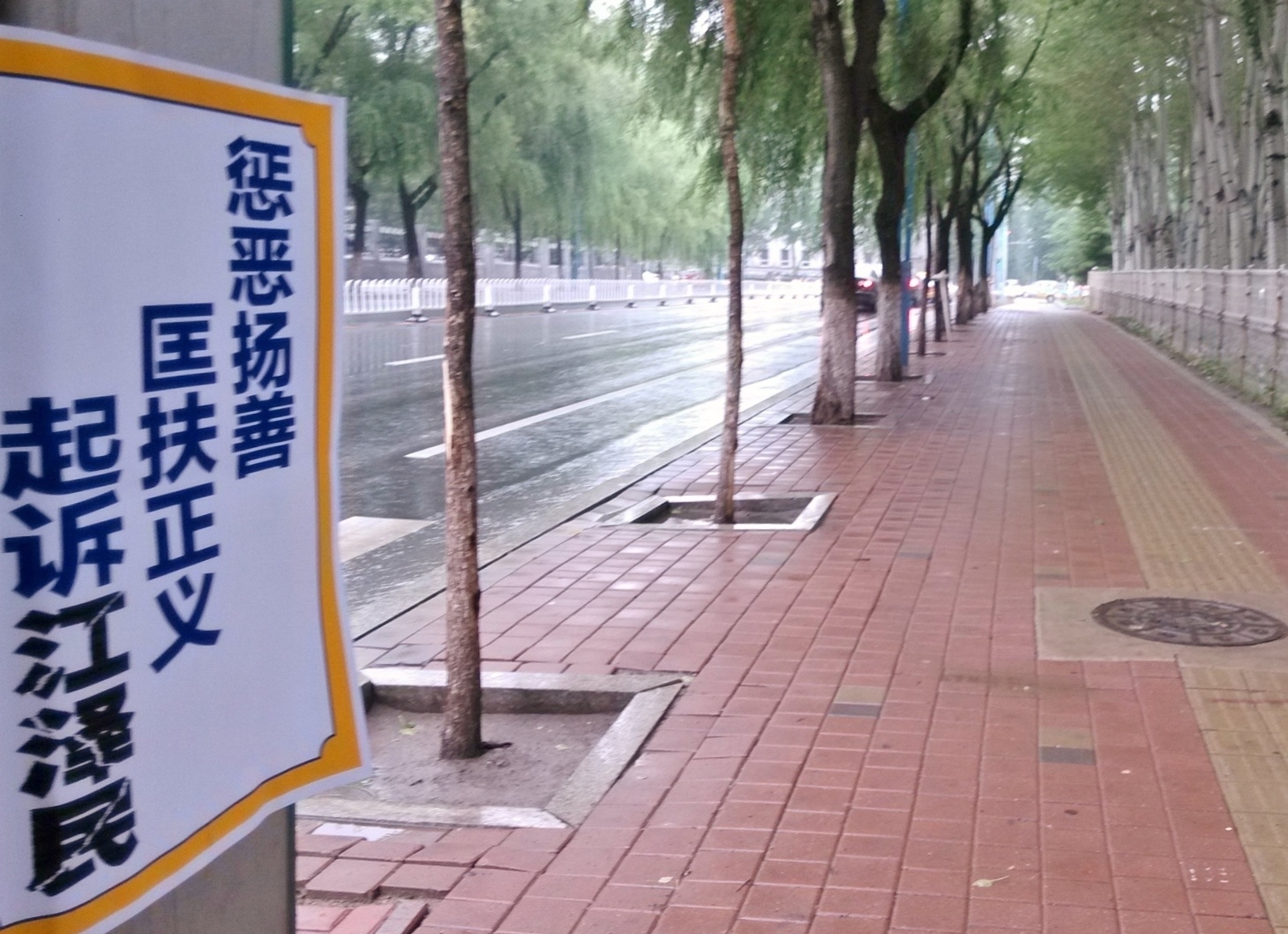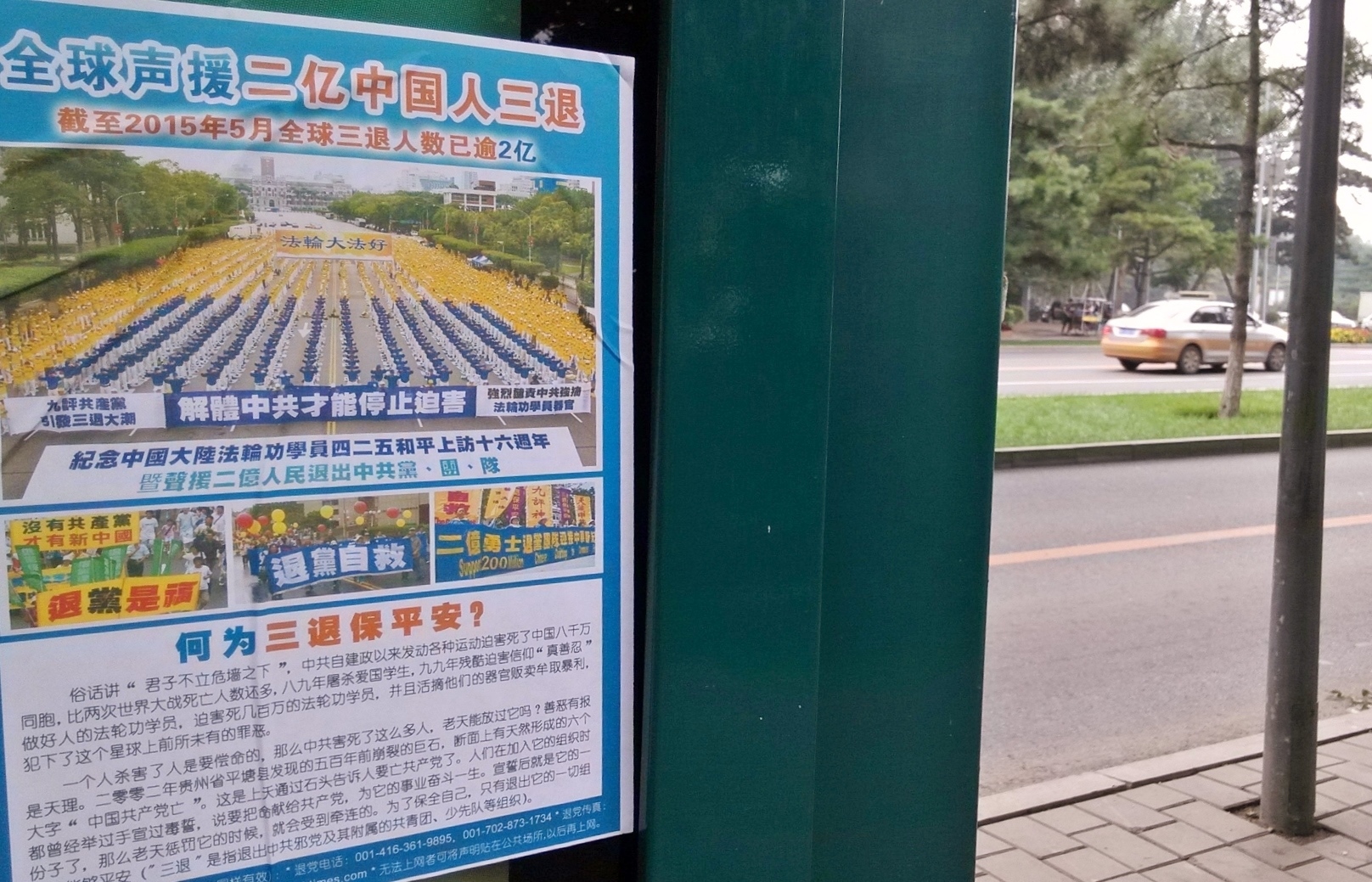 无论是远在城外的国家5A级净月潭风景区,还是近在城内的国家重点保护建筑物地质宫广场(曾经的千人炼功广场),还是公路、站点、林荫小路、广告牌匾,都可见到:“法轮大法好”、“真善忍好”、“起诉江泽民 正义必胜”、“将罪魁祸首江泽民绳之以法彰显天道公理”、“审判江泽民还法轮功清白”、“停止迫害法轮功把江泽民送上法庭”等真相标语。
