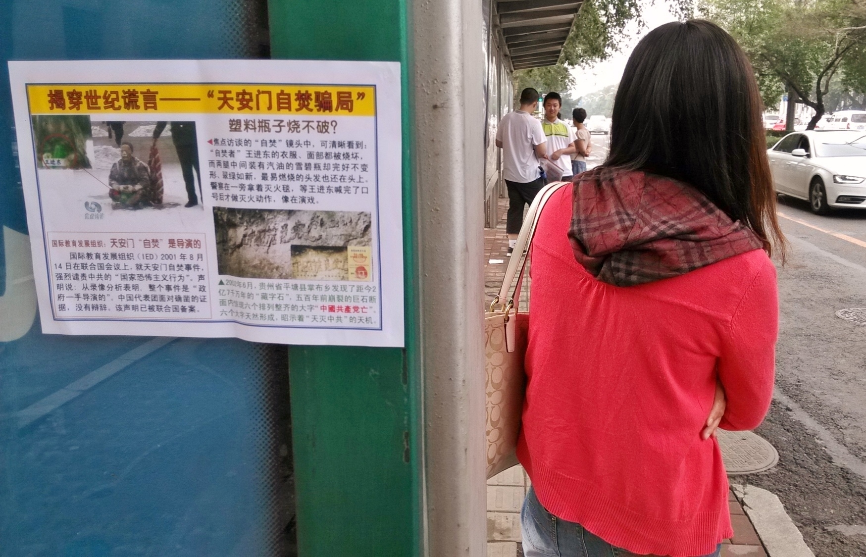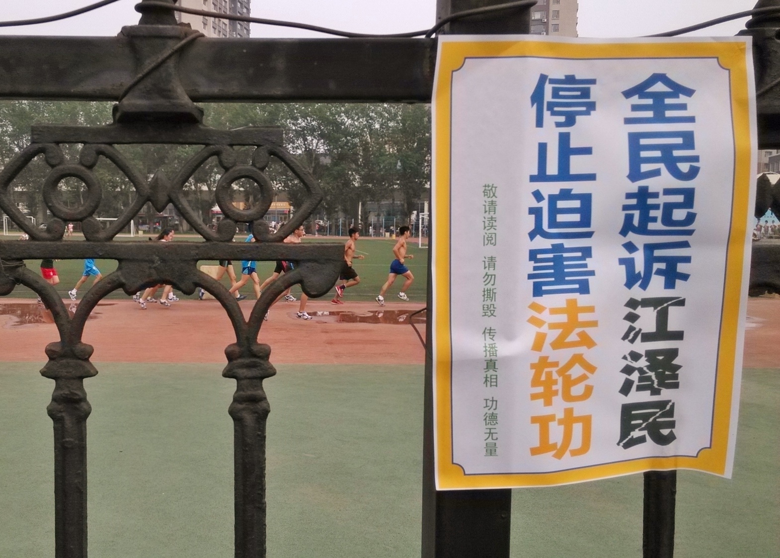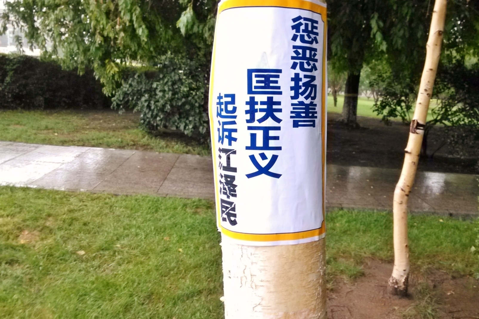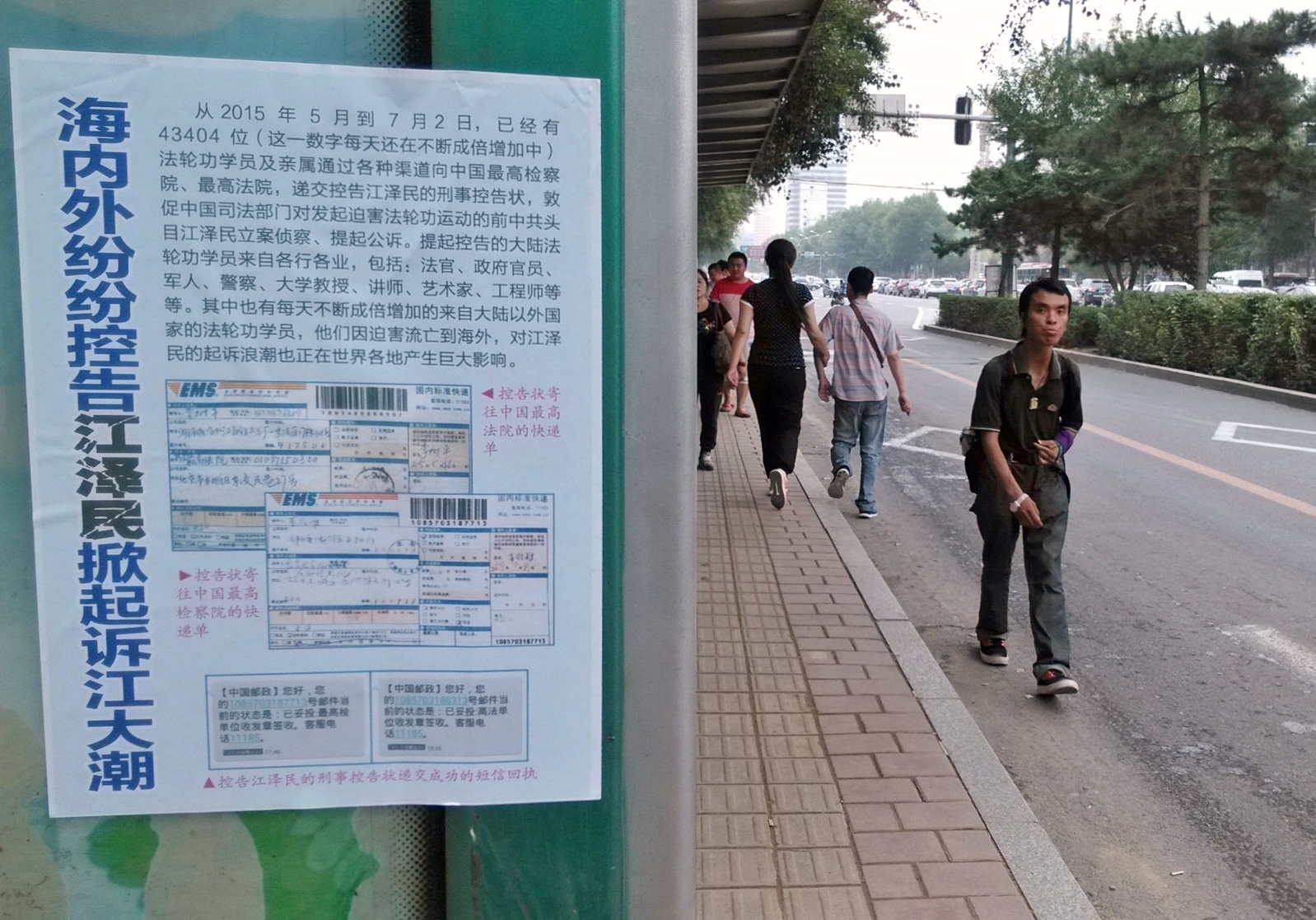 无论是远在城外的国家5A级净月潭风景区,还是近在城内的国家重点保护建筑物地质宫广场(曾经的千人炼功广场),还是公路、站点、林荫小路、广告牌匾,都可见到:“法轮大法好”、“真善忍好”、“起诉江泽民 正义必胜”、“将罪魁祸首江泽民绳之以法彰显天道公理”、“审判江泽民还法轮功清白”、“停止迫害法轮功把江泽民送上法庭”等真相标语。
