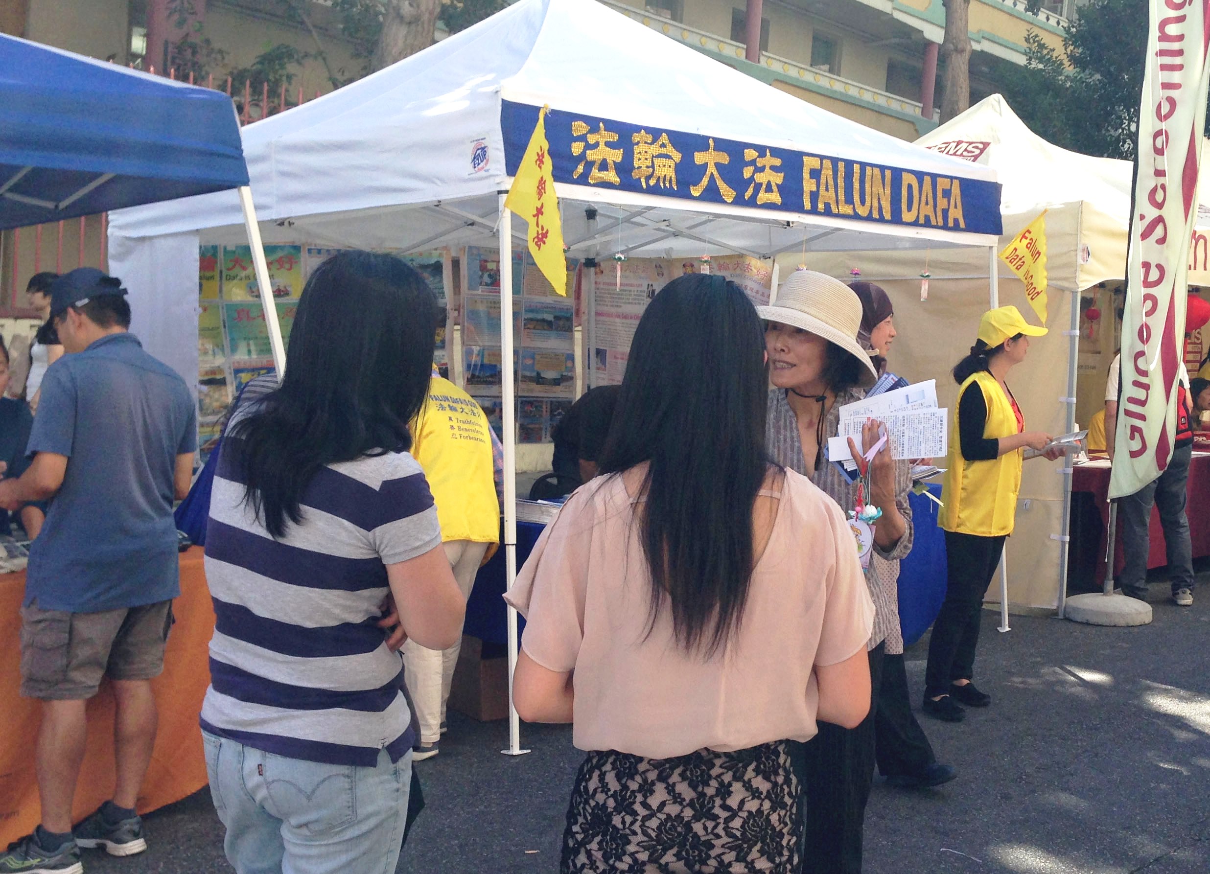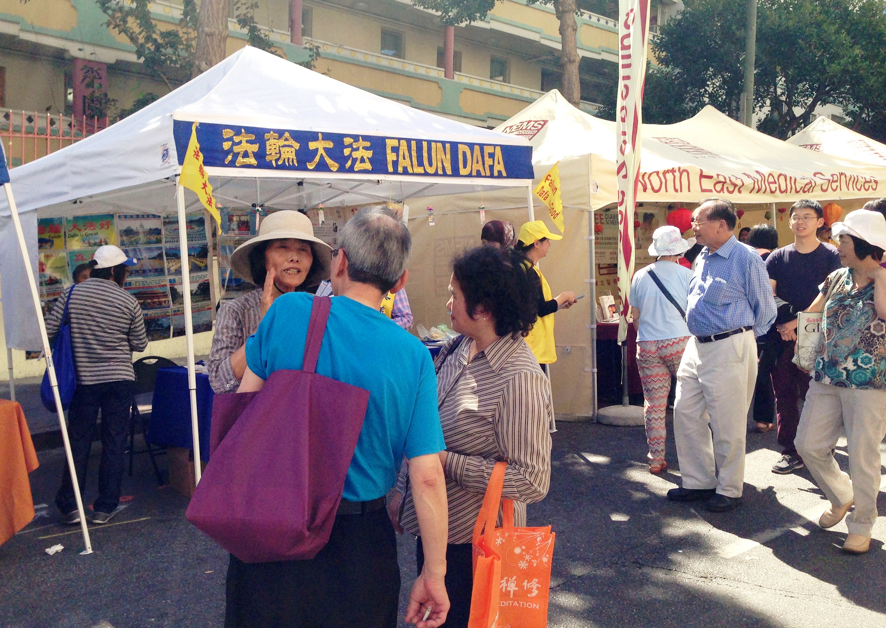 ![]() 图1:法轮功学员在旧金山中国城中秋街会设立摊位,传播法轮功的真相。 |