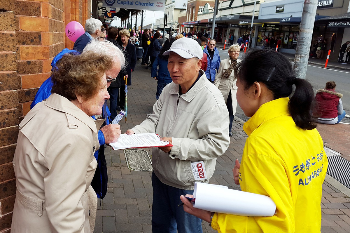 当地市政府议员图尔兰德(Wingecarribee Shire Council councillor Garry Turland)看到正在街上征签的法轮功学员,上前友好地打招呼,并说:法轮功每年都参加宝柔镇的郁金香节游行。他表示了解法轮功在中国受到的迫害,很同情受迫害的法轮功学员。他随后在制止“活摘”和声援“诉江”征签表上签了名。