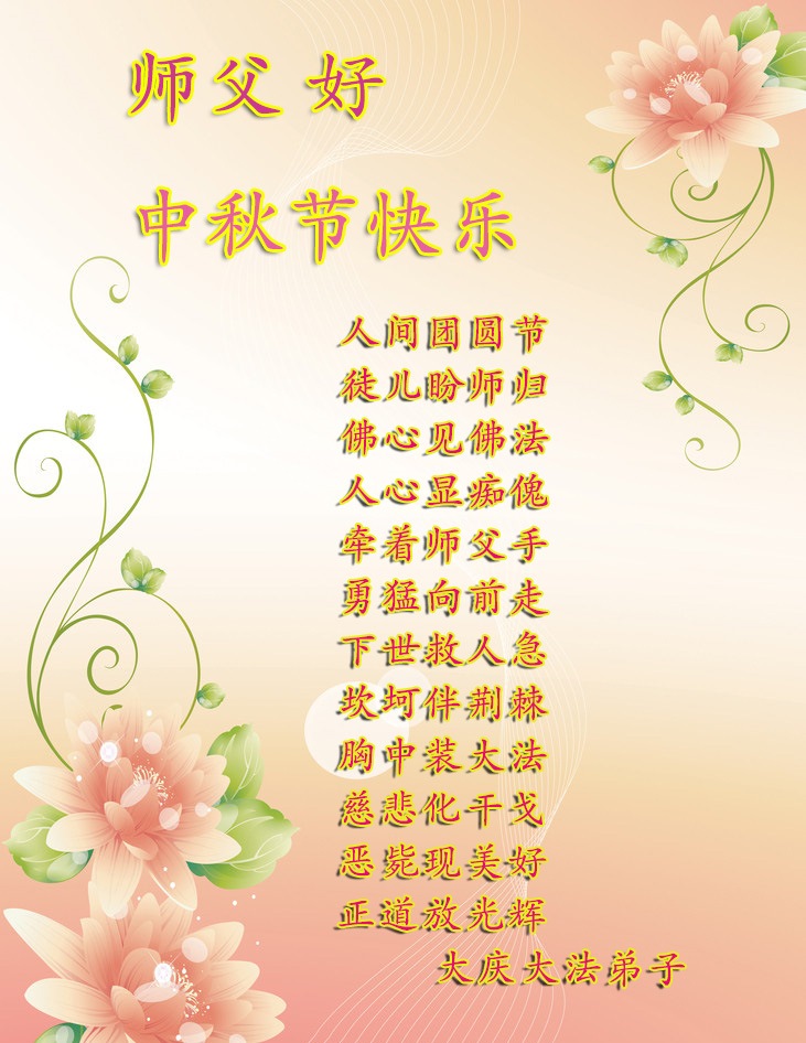 <英文版: http://en.d2s3ombhnov3zf.cloudfront.net/html/articles/2015/9/26/152698.html>教育系统大法弟子恭祝师尊中秋好(23条)