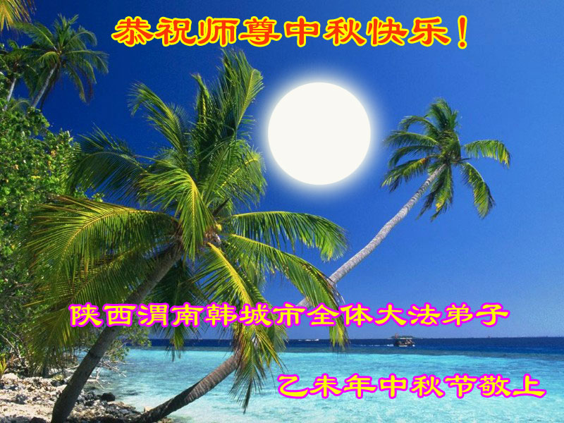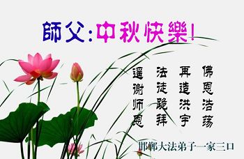 今逢中秋佳节之日,俩大法弟子和俩家人谨向慈悲伟大的李老师问好,叩谢!弟子一定学好法、修好自己、证实好法、多救众生。坚定正信,努力兑现自己史前的誓约。叩谢师尊的慈悲苦度!
