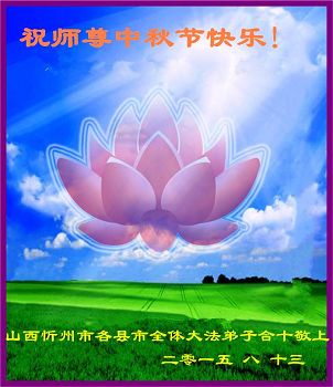 值此中秋佳节,河北满城县全体农村大法弟子向慈悲伟大的师尊合十!问候师尊中秋节快乐!