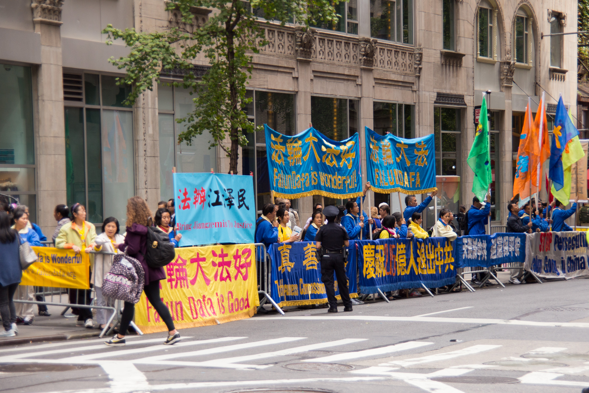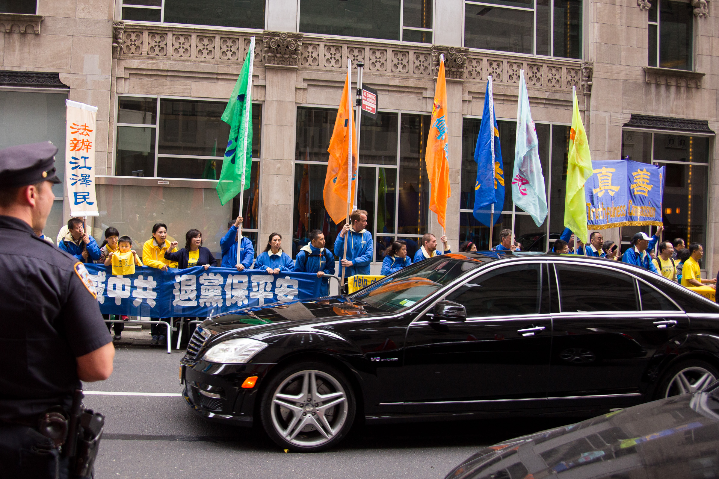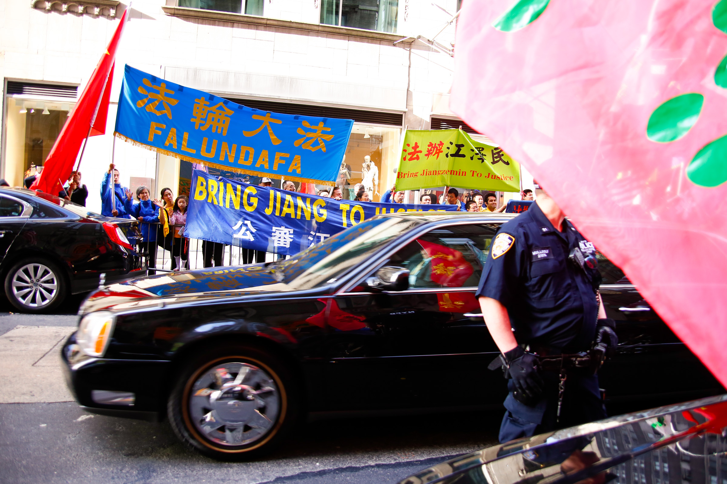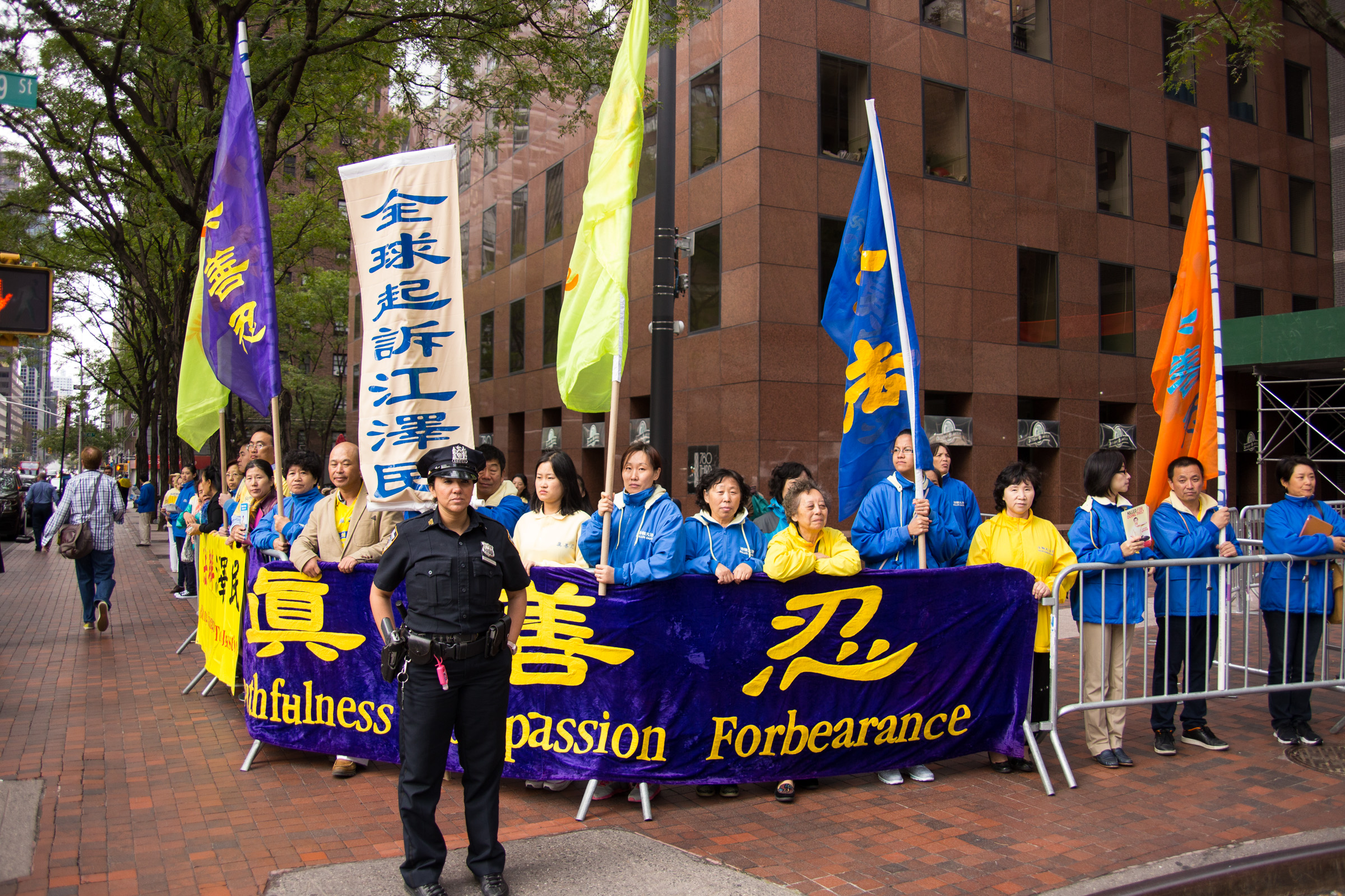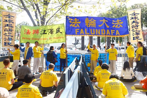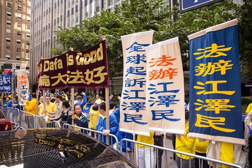 二十六日,纽约法轮功学员在习*近*平入住的华尔道夫酒店和联合国大厦前继续和平请愿,表达“停止迫害法轮功”、“法办江泽民”的诉求。