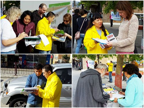 华人徐先生从基督教会出来后,看到法轮大法讲真相的摊位和学员后,真诚的赞美法轮功学员说:法轮大法真好!你们法轮大法学员真不容易!共产党坏透了,都不是好东西。我也经常劝我的朋友“三:退.”,告诉他们关于法轮功的情况。 让他们看《大.纪.元;》报纸。
