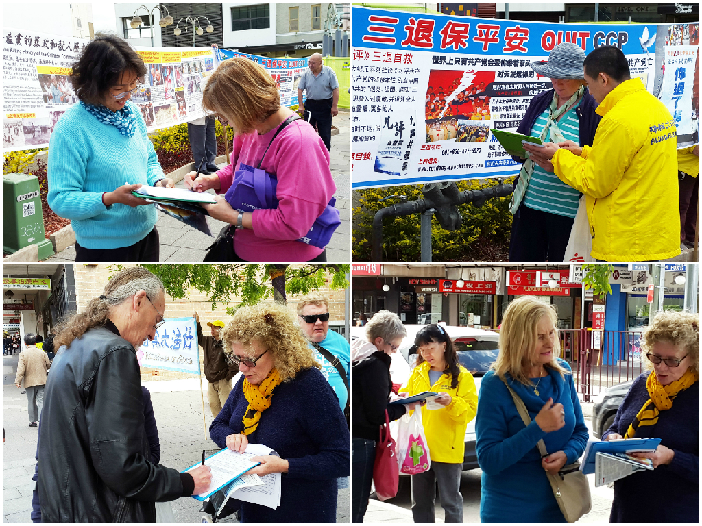 乔治(George)路过真相摊位,特意走到签名桌上签名,他告诉法轮功学员:我从电视上看到这事,我觉得这个(“活摘”)非常不好。政府不能为了救一个人而同时杀掉另一个人。我们要求澳洲政府,不要因为贸易而不和中国提人权问题。我们需要聚集中国以外更多国家的力量来制止中国政府的邪恶行为。