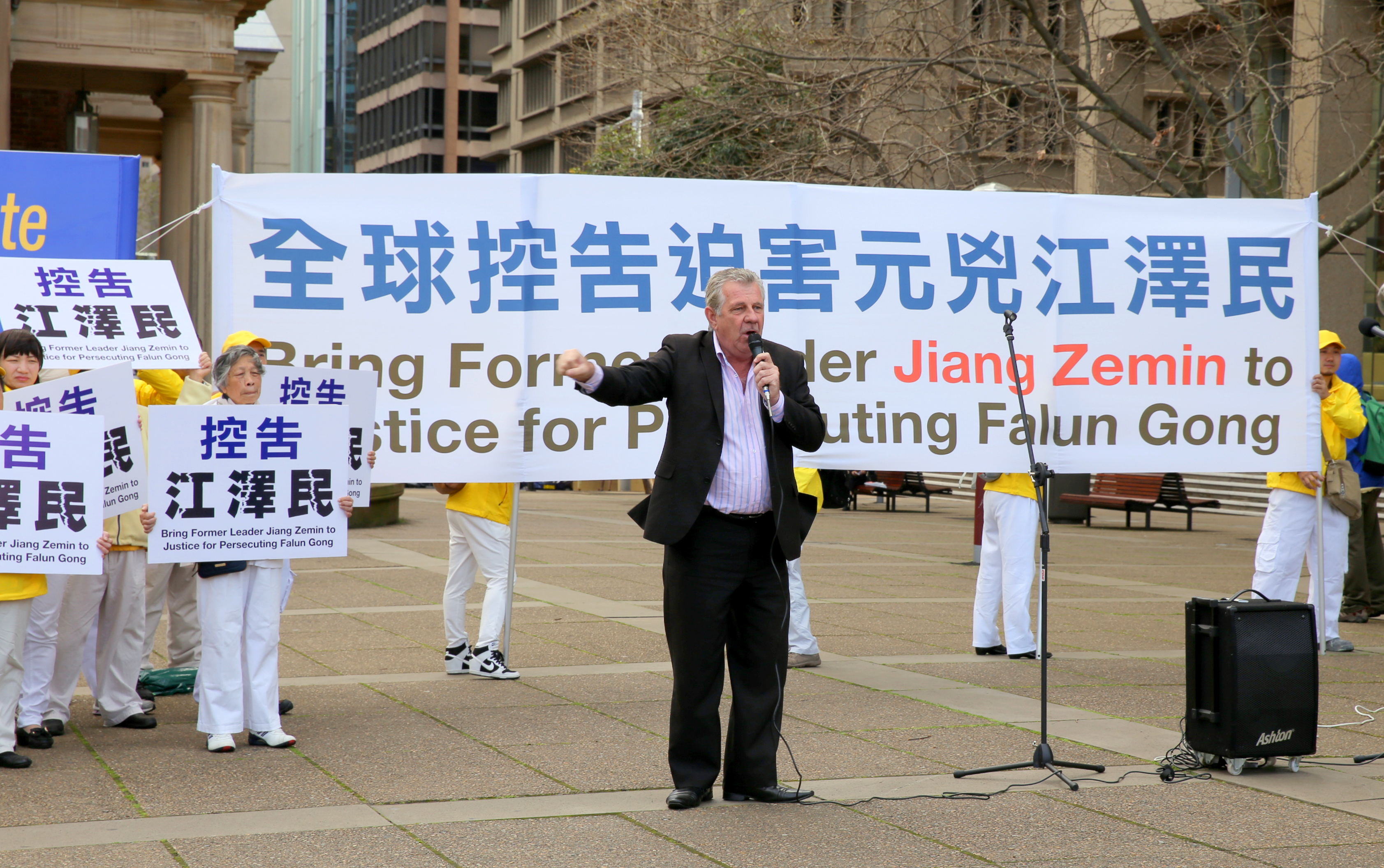 他说:“我希望,也相信普通的澳洲人都看到了(中国)在发生着什么事情,我们要支持澳洲的法轮功学员,他们是全身心站在中国大陆法轮功学员的身后。让我们将这场屠杀制止,而发动与维持这场迫害者应尽快绳之以法。”