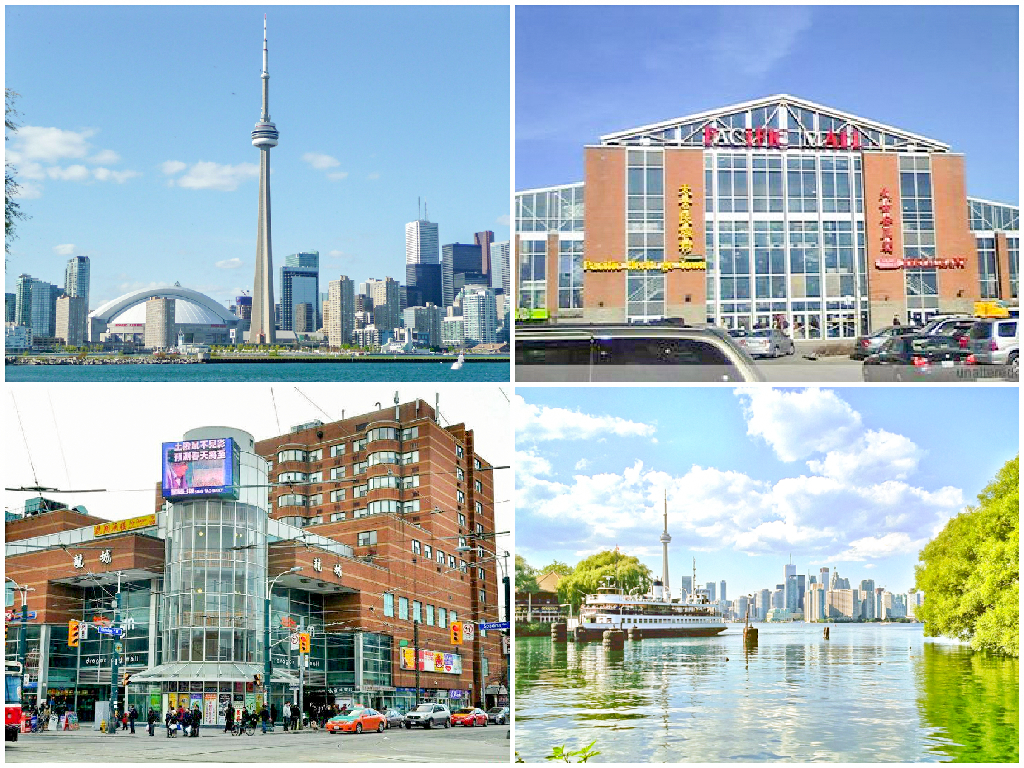 ![]() 除皇后公园外,国家电视塔(左上)、太古广场(右上)、唐人街(左下)、中心岛(右下)都是多伦多的旅游景点,法轮功学员一直坚持在这些景点迎接我们这些可贵的中国人。 |