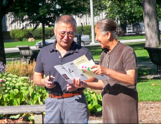 法轮功学员王金菊说:“现在大陆来的游客,有的直接奔着来要资料的;有的要《·九·评*》的;有的要学功法的,说要学会回国炼。有的说国外自由,到处都有法轮功,学会了回国炼去。”