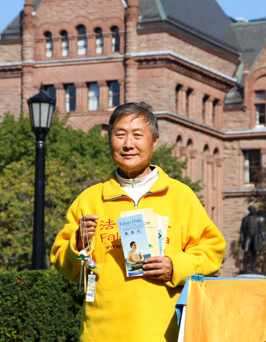 陈先生说:“法轮大法是性命双修的功法,我们按照真、善、忍的标准严格要求自己,在心性提高的同时改变本体,现在世界上有一百多个国家的人在修炼法轮大法。我炼了法轮功后,越来越精神。”