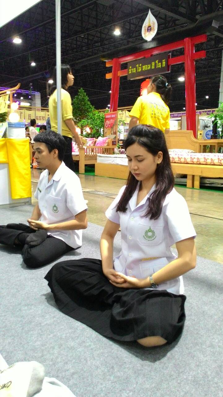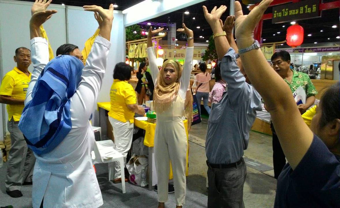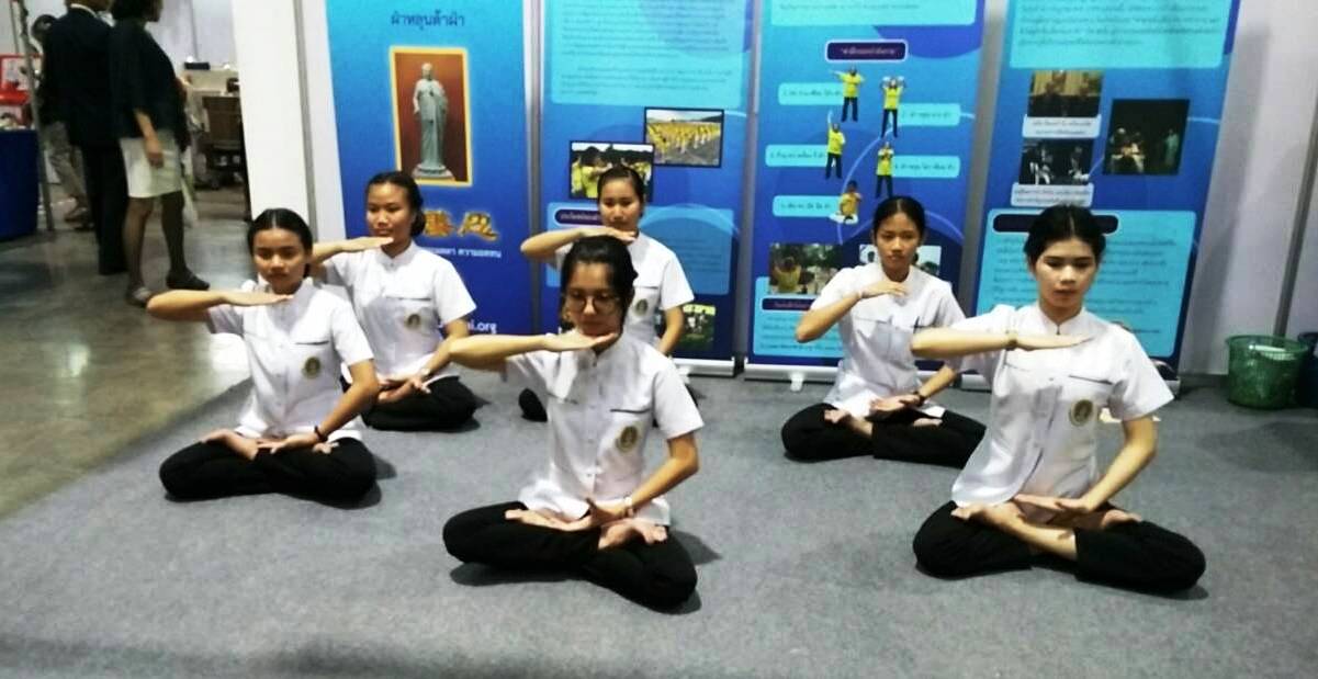 五天的活动中,有来自泰国各地的传统医疗、医学、中药等众多展位参展,也有学术专家参与讨论。法轮功的展位很受人们欢迎,学员们不间断地发放传单,播放录像,向过往的人们介绍法轮大法提升道德、强身健体的奇效以及法轮功在中国无辜被中共迫害的真相。不少人在了解真相后,拿了资料,还买了《转法轮》回去阅读。