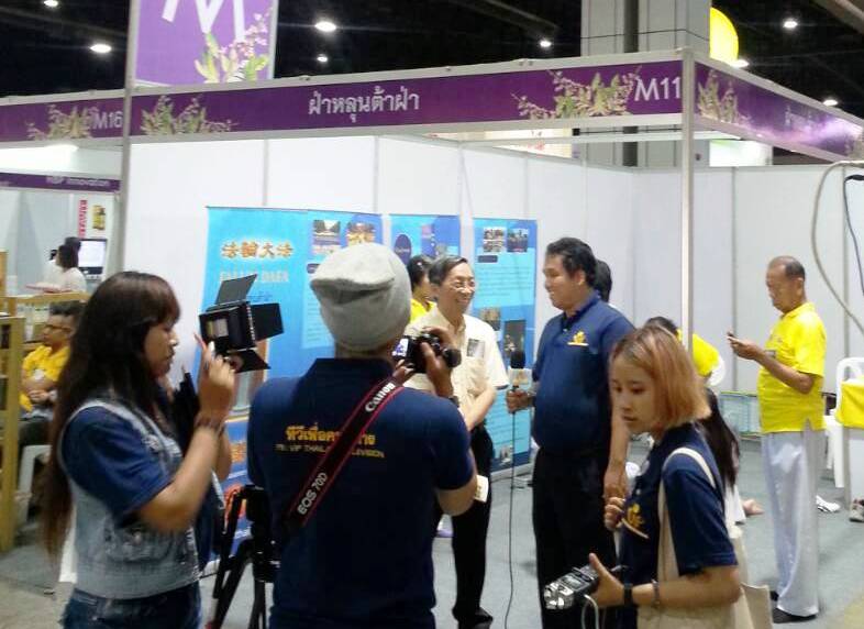 ![]() 图8:泰国Boonniyom电视台拍摄和采访法轮功展位 |