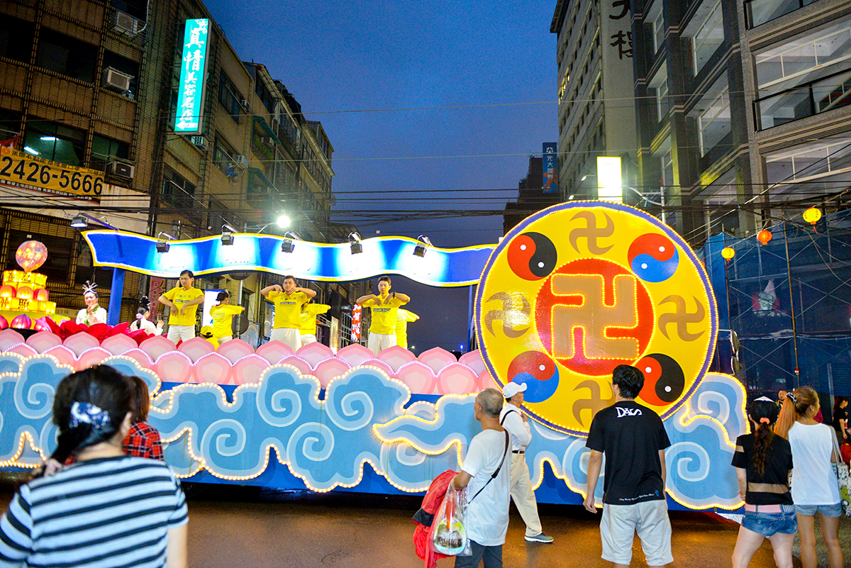 【明慧网二零一五年九月八日】二零一五年台湾基隆市中元祭游行于八月二十七日举行,法轮大法学会再度应邀参加。天国乐团、仙女队、花车与功法展示,深获民众喜爱。