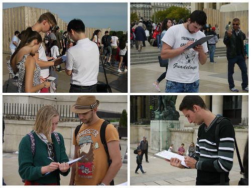 艾菲尔铁塔下 游人签名声援诉江大潮(图) 【明慧网】