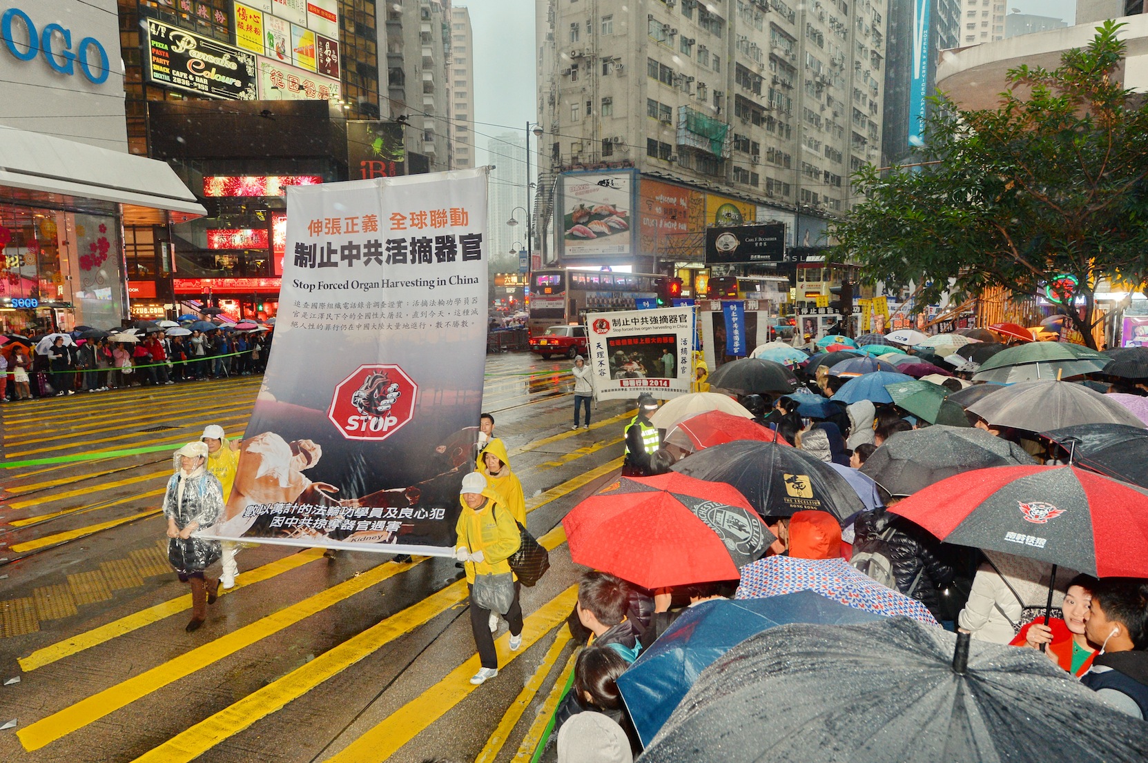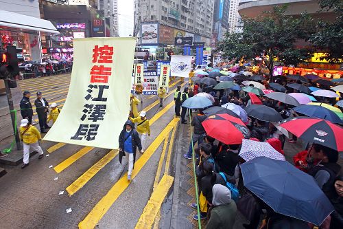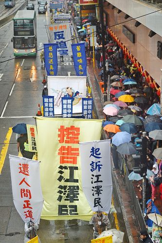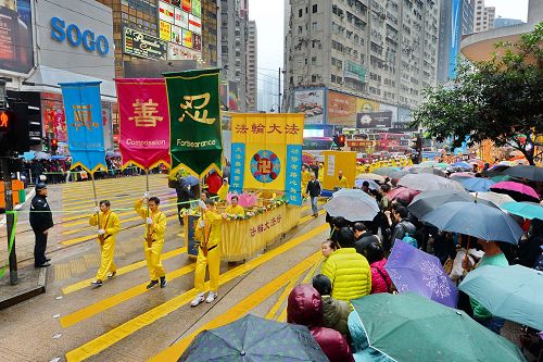 集会结束后,约八百名法轮功学员的游行队伍从英皇道游乐场出发,途经铜锣湾、湾仔、中环等闹市前往终点中联办,沿途吸引许多游客和市民聚焦观看,更强烈的震撼了来自中国大陆的游客。