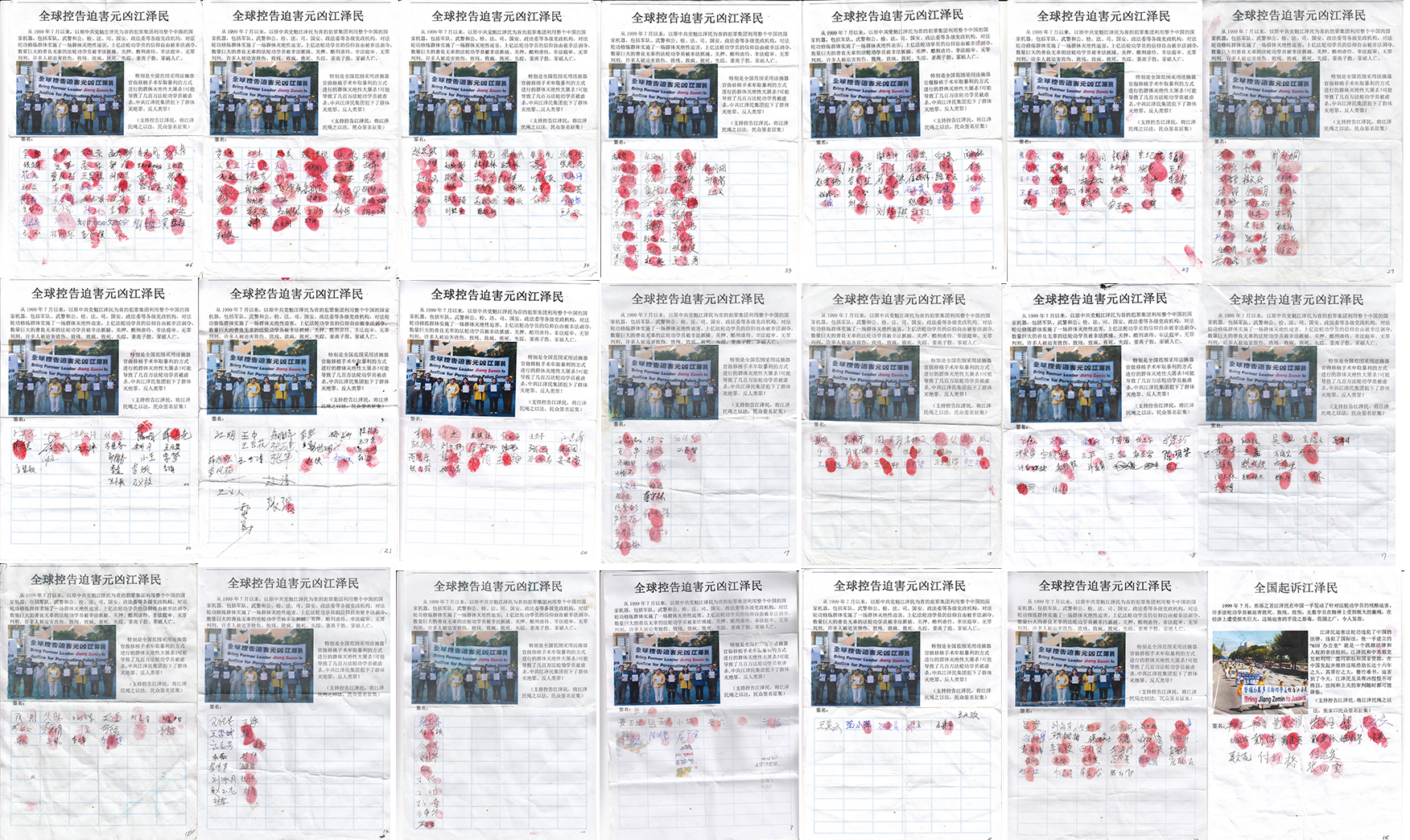 二零一五年五月以来,中国大陆法轮功学员发起了控告江泽民的大潮,目前已有二十万法轮功修炼者把控告元凶江泽民的刑事控告状邮寄给中国最高检察院,要求最高检察院向最高法院对江泽民提出公诉,把这个首恶绳之以法。法轮功学员诉江,不仅是作为受害者讨还公道,也是在匡扶社会正义,维护所有中国人的做好人的权利。希望社会各界都来声援和加入这场诉江大潮。