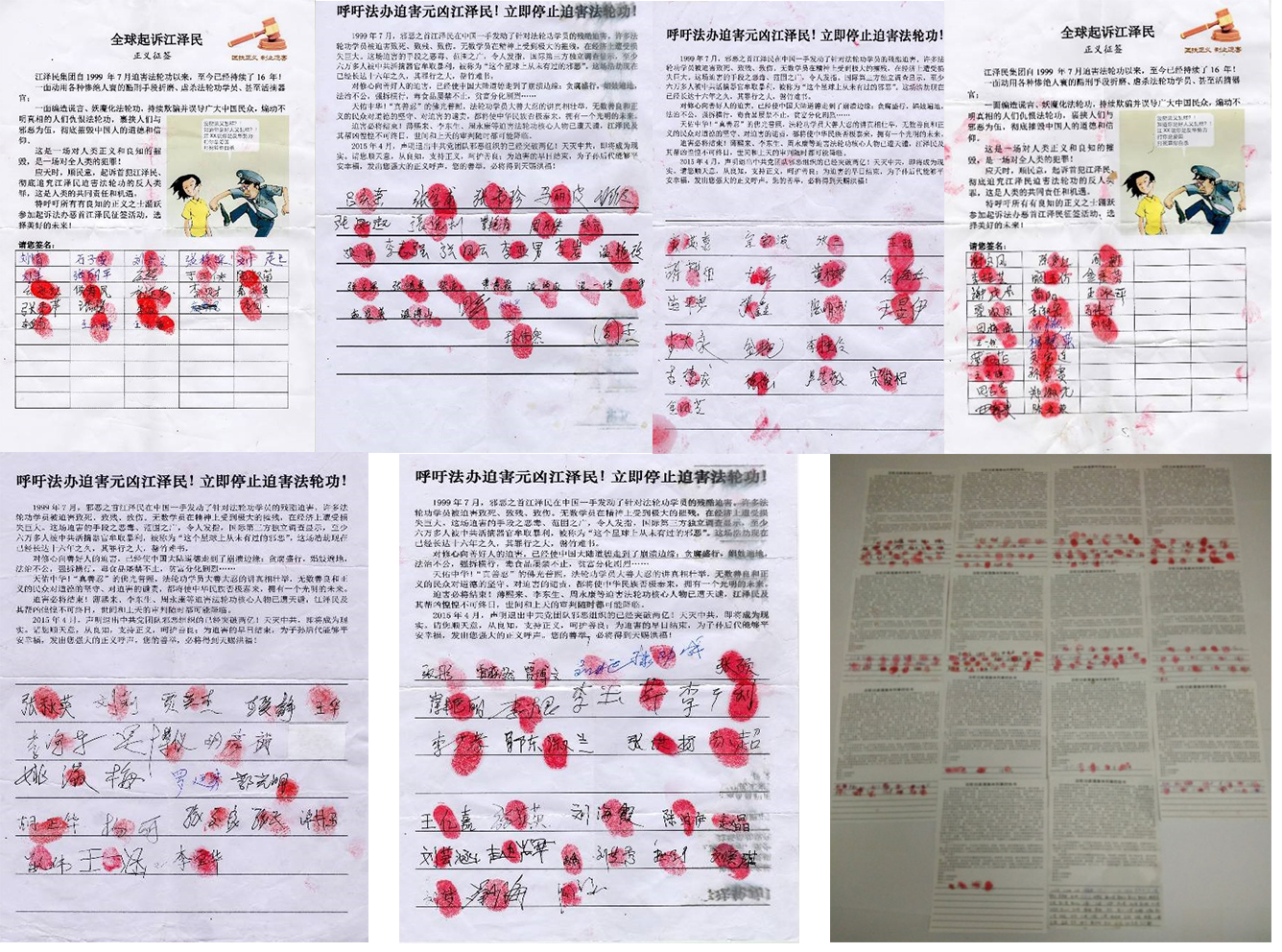 一签名人说:“举报江泽民,我就用真名,他(江泽民)太坏了,没干好事,快点把他抓起来,送上法庭。”