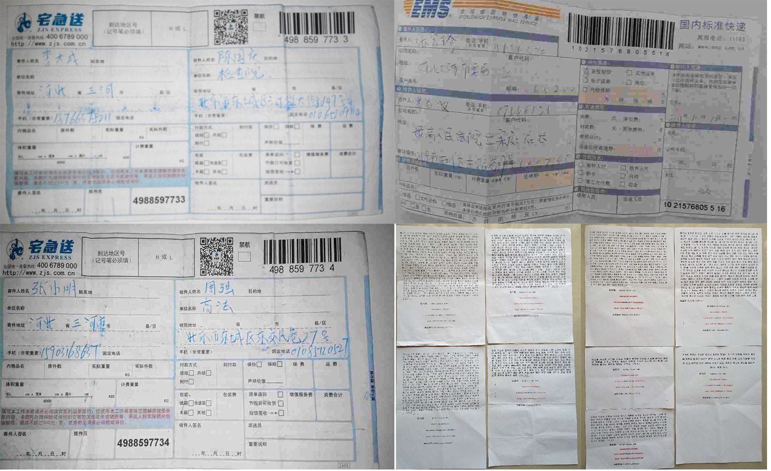 送至两高、中纪委的举报江泽民的征签名及收到的查询密码及单据:
