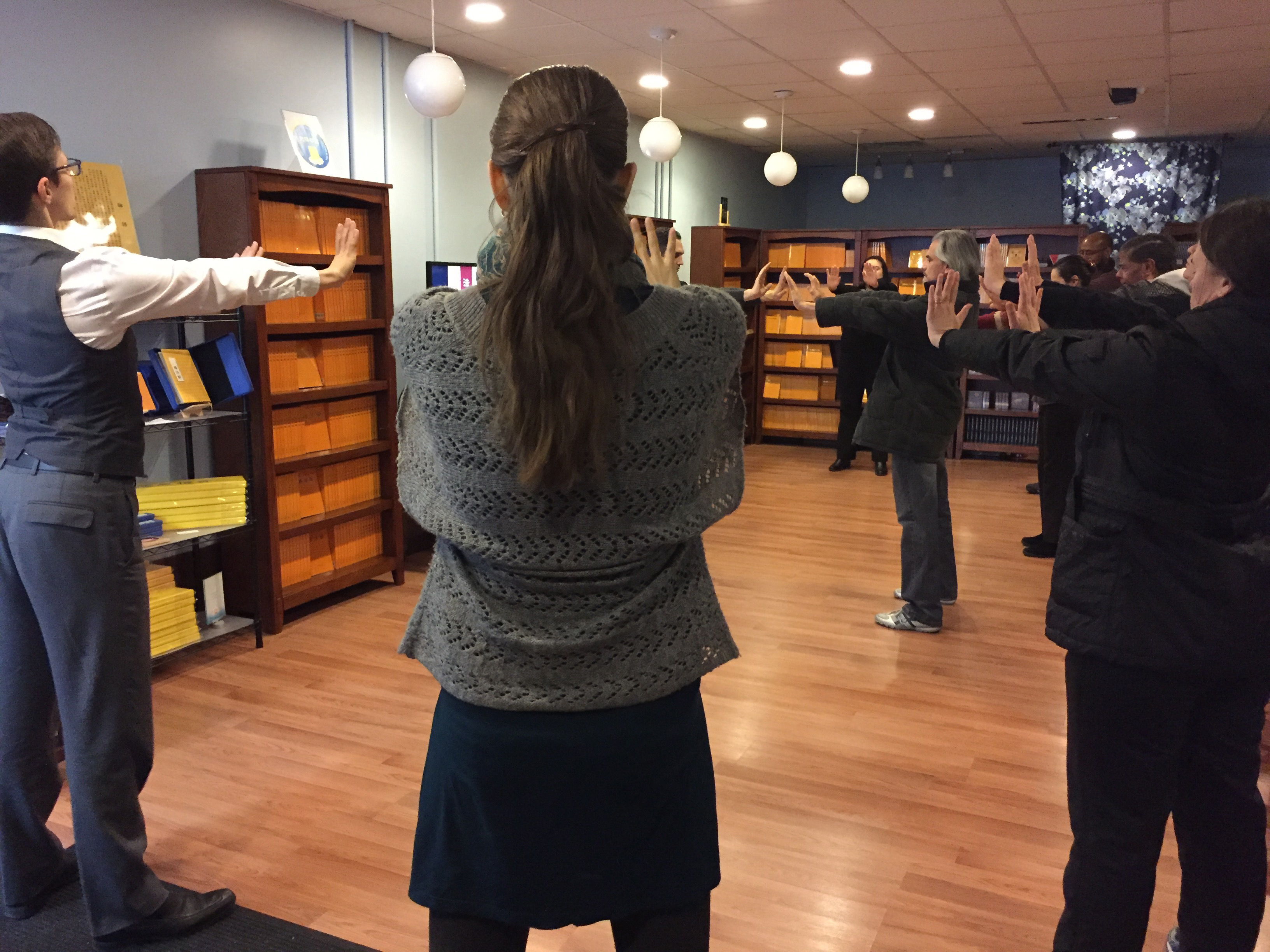 来自南美的贝吉塔是一位认真细致的女士,学功的时候,不断对比着教功学员和录像,自己比划、琢磨动作。她练过多种打坐方法,同时也是天主教徒,并且一直在精神领域追寻。她表示,自己两年前就听说过法轮功,并且把相关的信息存在家里。但是几天前她看到天梯书店九讲班的信息之后,心里对自己说,这次我一定要来。开班前她在天梯书店购买了《法轮功》英文版。“在开始的两天中,听课中我一直发困,也听不懂;我买了书,可是稀里糊涂也看不进去。不过我决定还是坚持来听课。”她说到了第五天开始,头脑一下清醒了,大脑得到了清理,“现在看书也能看进去,并且清清楚楚记得内容。现在我明白了所发生的一切,明白我为什么应该来参加九讲班。”她很高兴自己开始理解修炼,“从前我不明白,为什么老人教育孩子,别人打你左脸,你给他右脸。听了李老师的讲课,我终于明白了。”